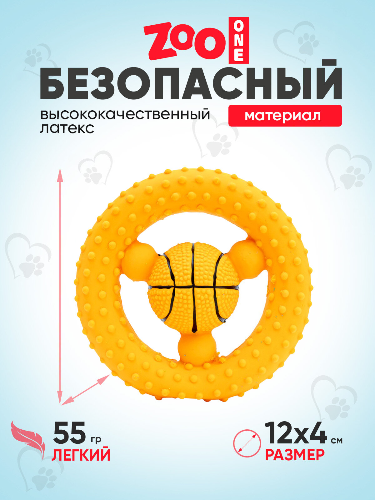 Игрушка для собак с пищалкой (мягкий латекс) Zoo one Баскетбольный руль 12 см информация: