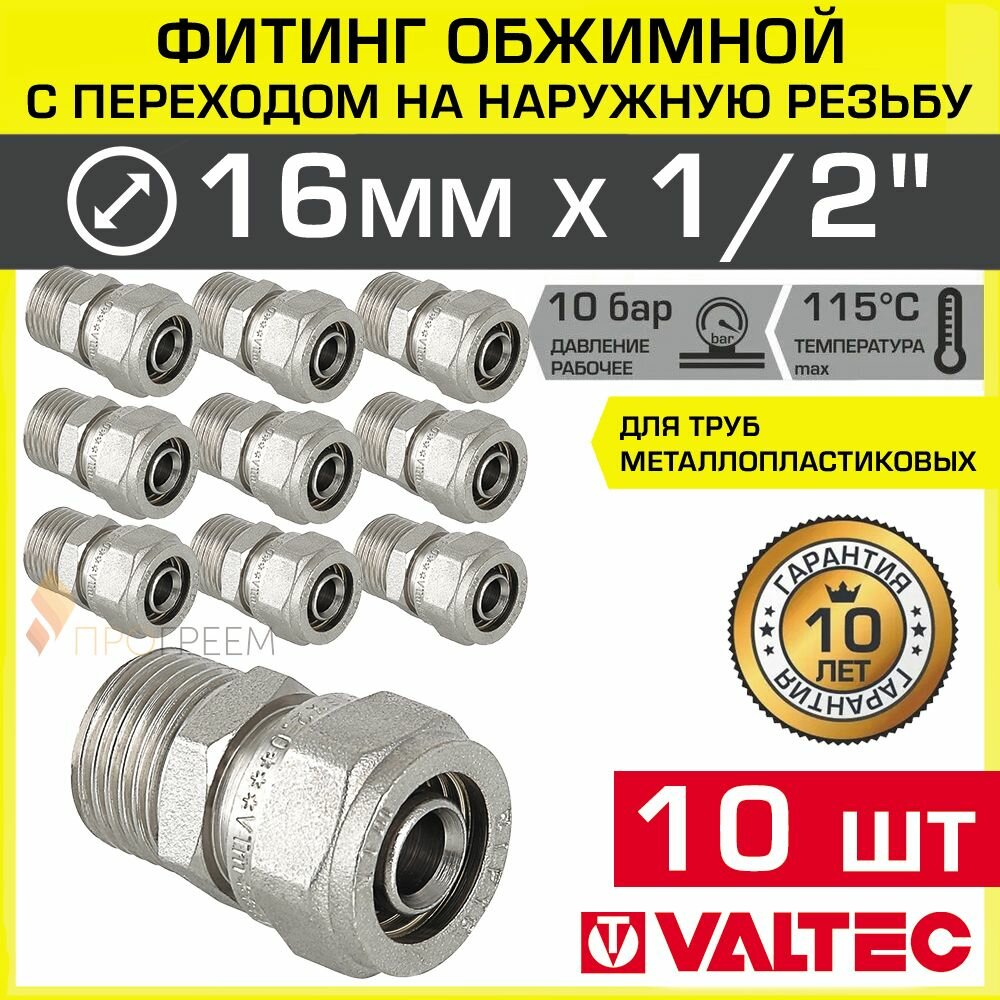 10 цен на Соединитель обжимной с переходом на нар. р. 16х1/2" | код. VTm.301.N.001604 | VALTEC (10шт.в упак.)