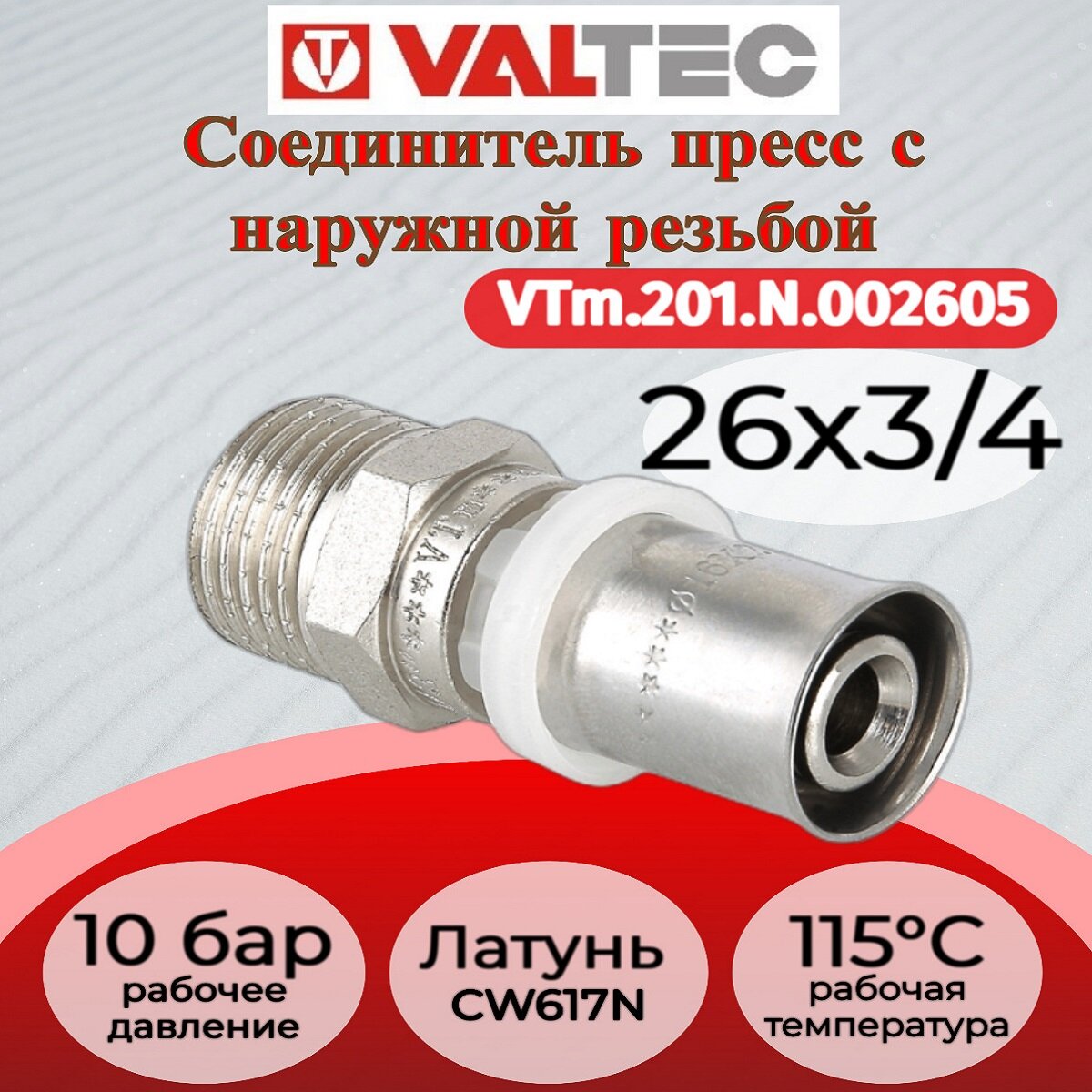 Valtec Соединитель пресс с переходом на нар. р. 26x3/4 VTm.201.N.002605