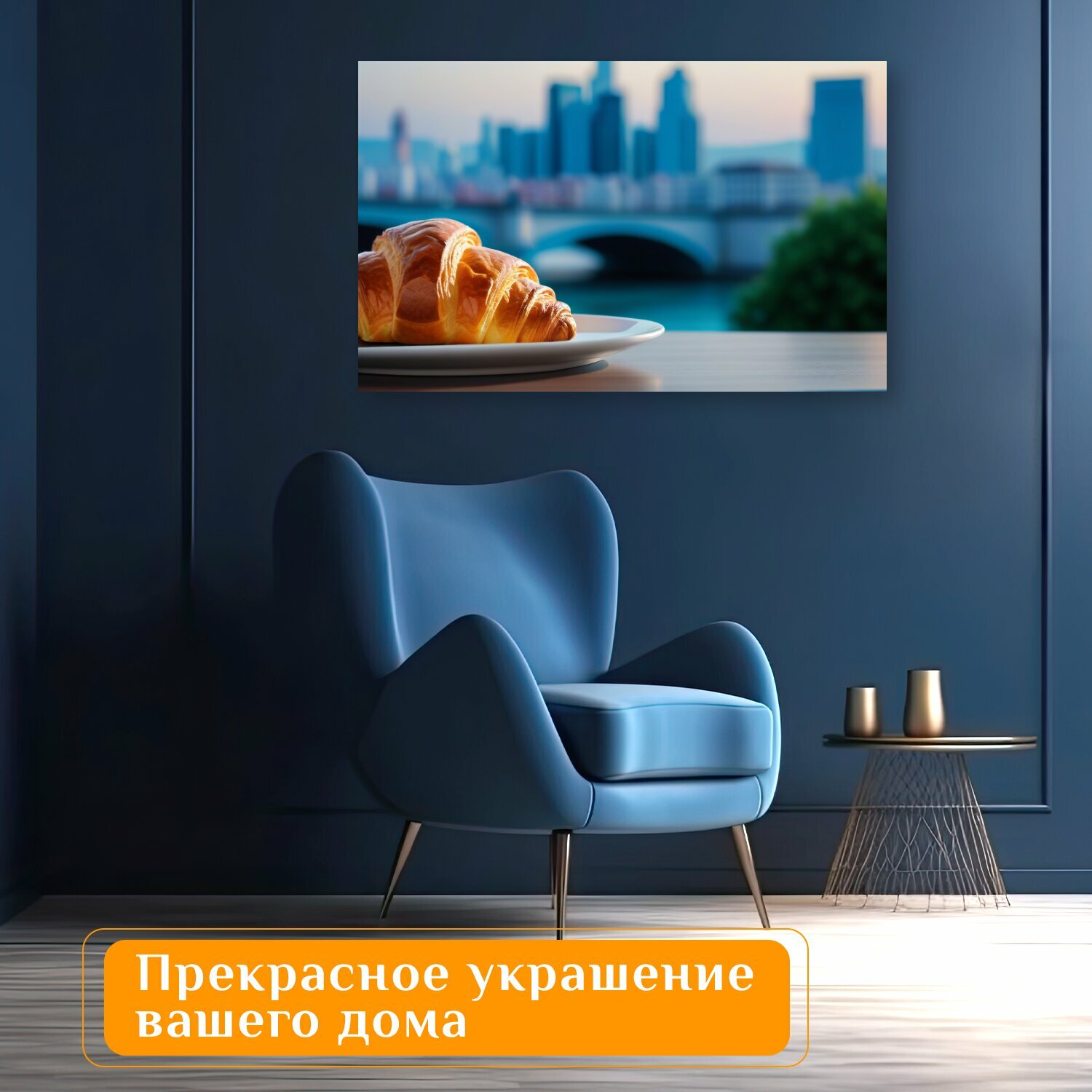 Отзывы на Картина на холсте "Кофе и круассан на фоне утреннего города , " на подрамнике 120х75 см. для интерьера