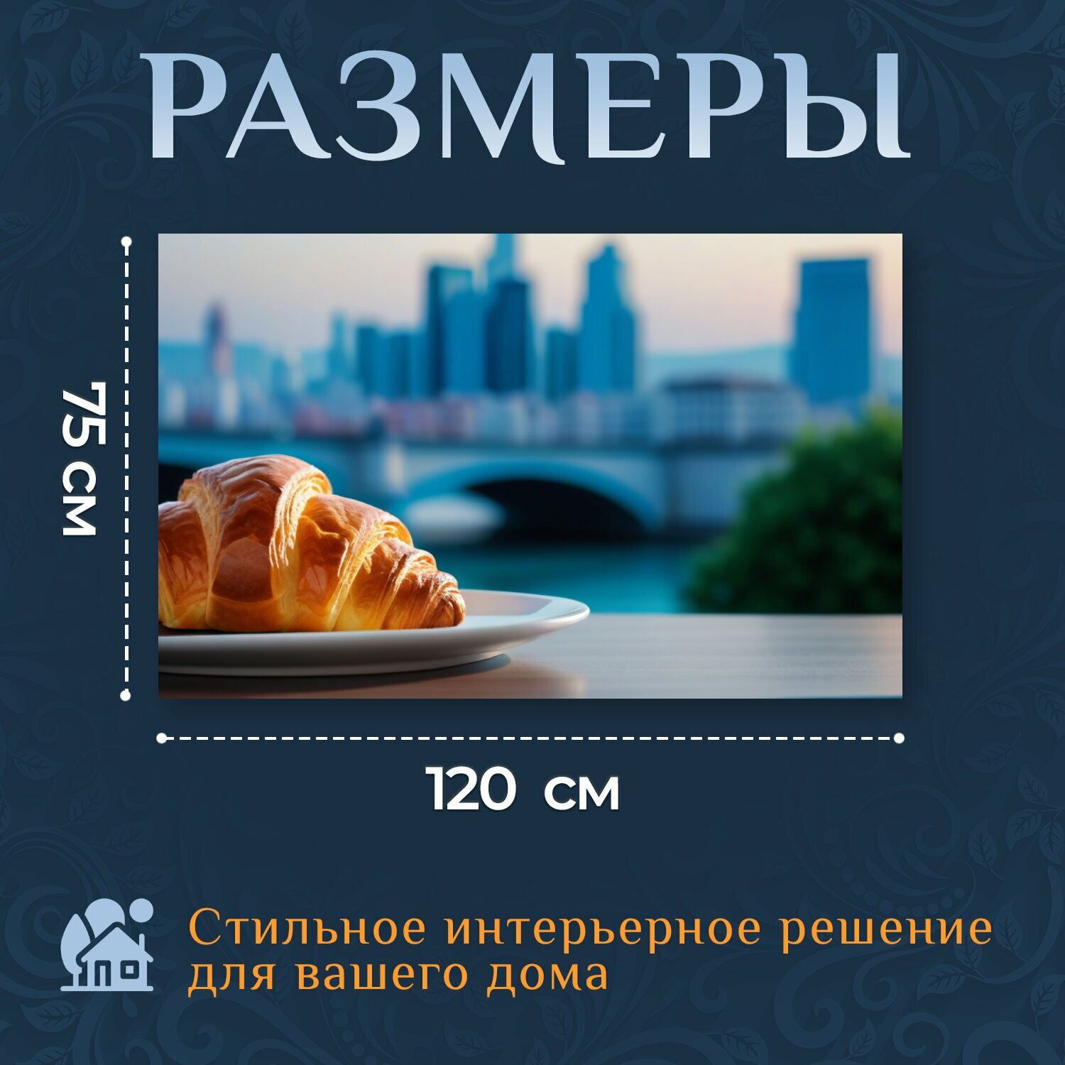 Картина на холсте "Кофе и круассан на фоне утреннего города , " на подрамнике 120х75 см. для интерьера информация: