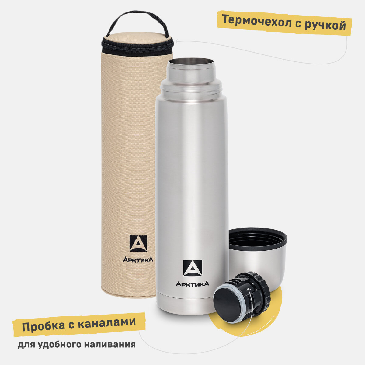 101-500 А в чехле Термос бытовой, вакуумный, питьевой тм "Арктика", 500 мл. 1 434 ₽