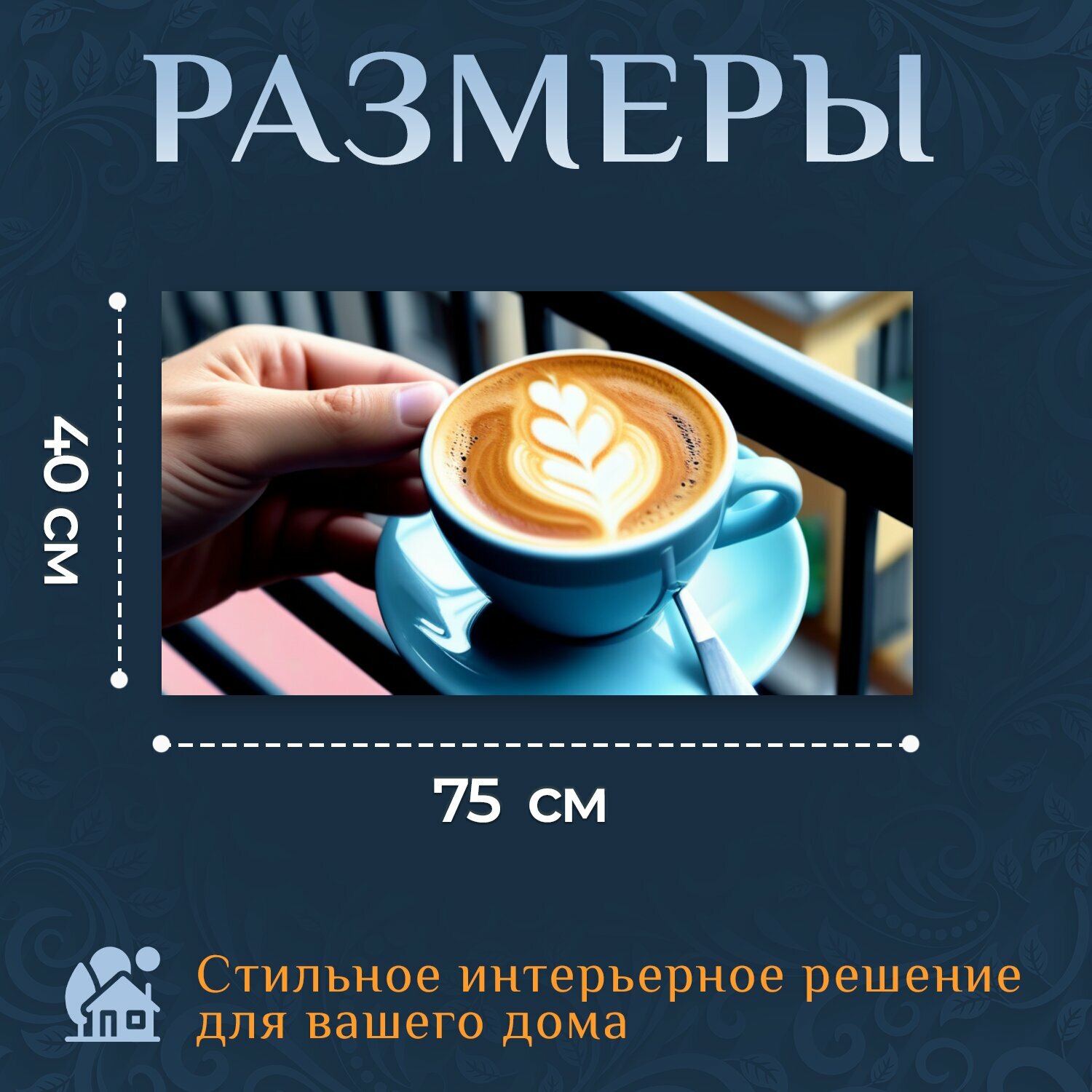 Картина на холсте "Момент наслаждения эспрессо на балконе , " на подрамнике 75х40 см. для интерьера информация: