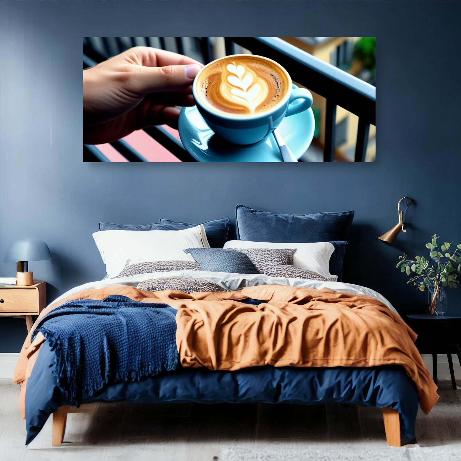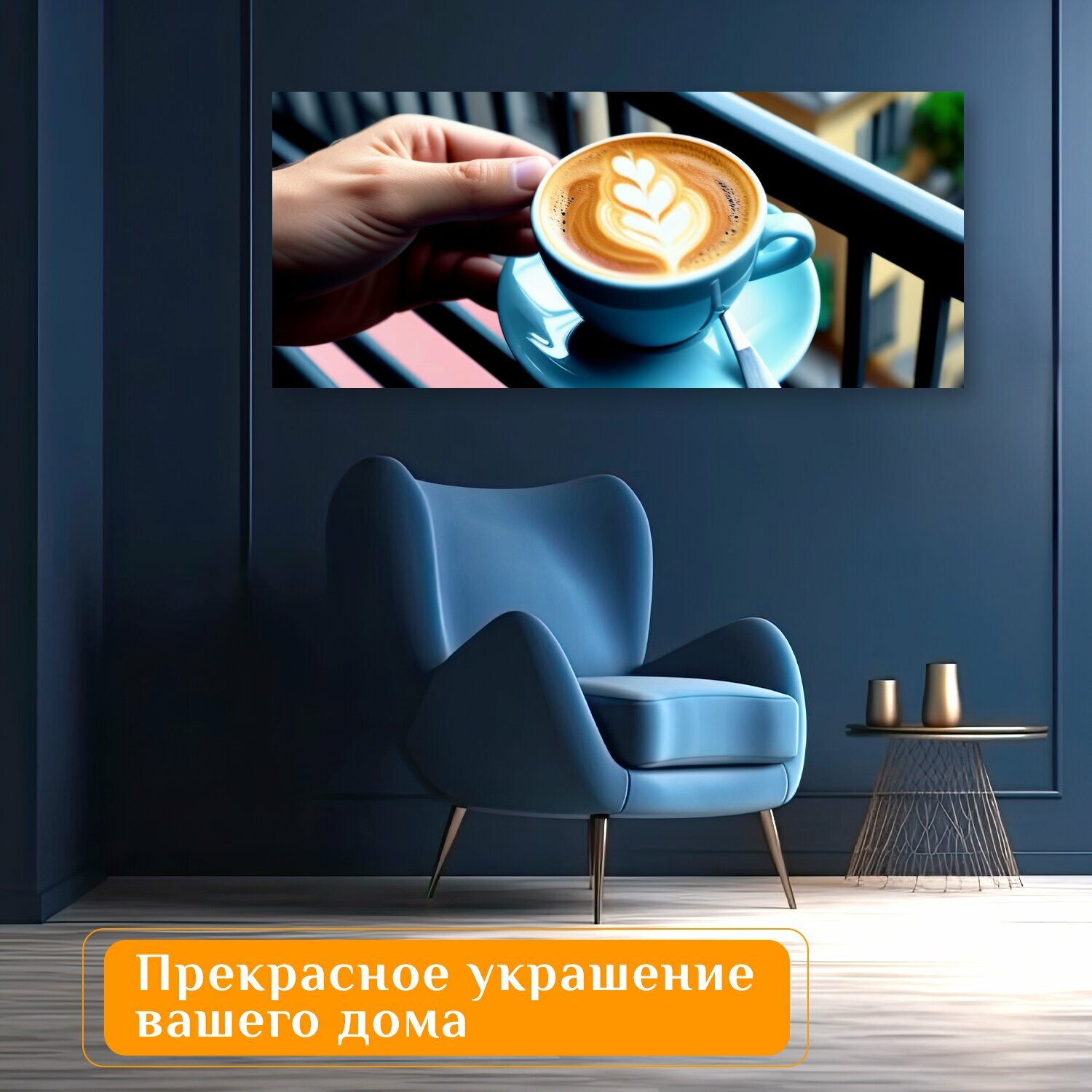 Картина на холсте "Момент наслаждения эспрессо на балконе , " на подрамнике 175х75 см. для интерьера информация: