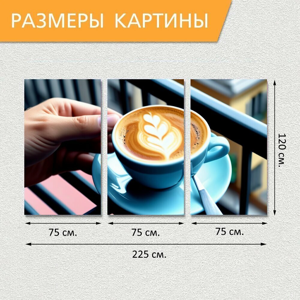 Модульная картина на холсте "Момент наслаждения эспрессо на балконе , " триптих на подрамнике 225х120 см. для интерьера информация: