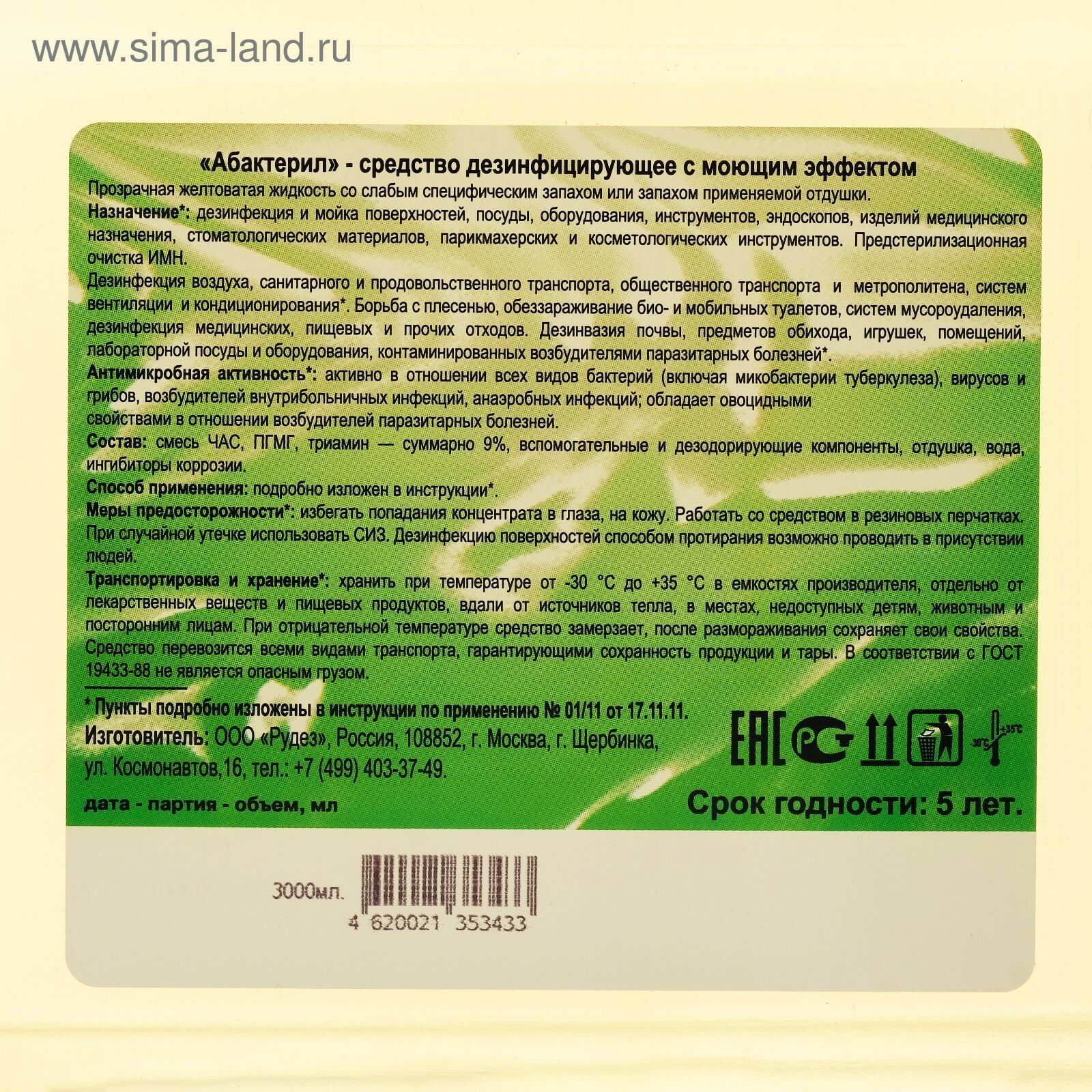 5 шт. Абактерил 1 л. Концентрат ГОСТ 12.1.007-76