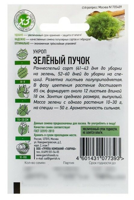 Семена Укроп "Зеленый пучок", ц/п, 2 г серия ХИТ х3(5 шт.) информация: