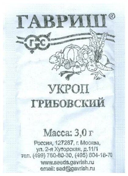 Семена Укроп Грибовский 3г Ранние (Гавриш) Белый пакет информация: