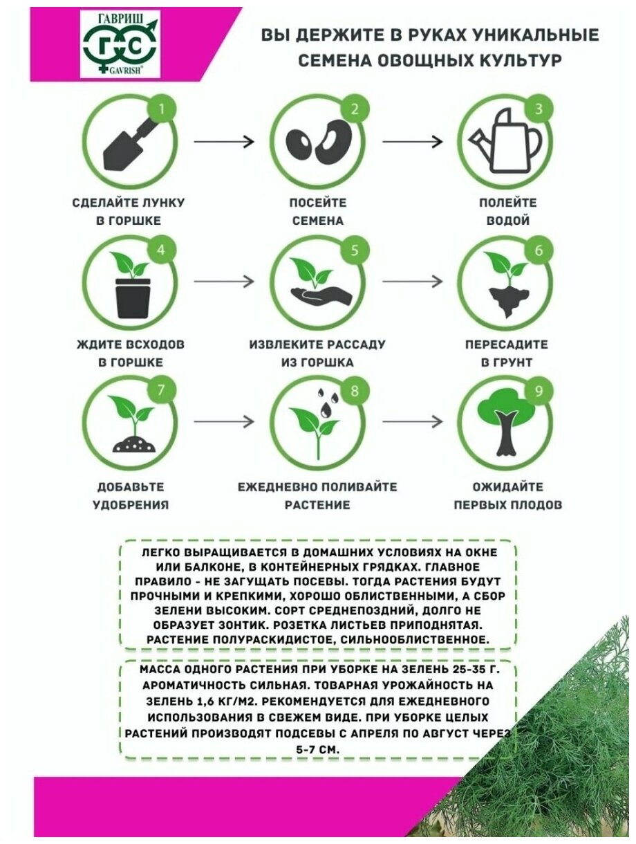 Семена Укроп Озорник 2г (Гавриш) Урожай на окне информация: