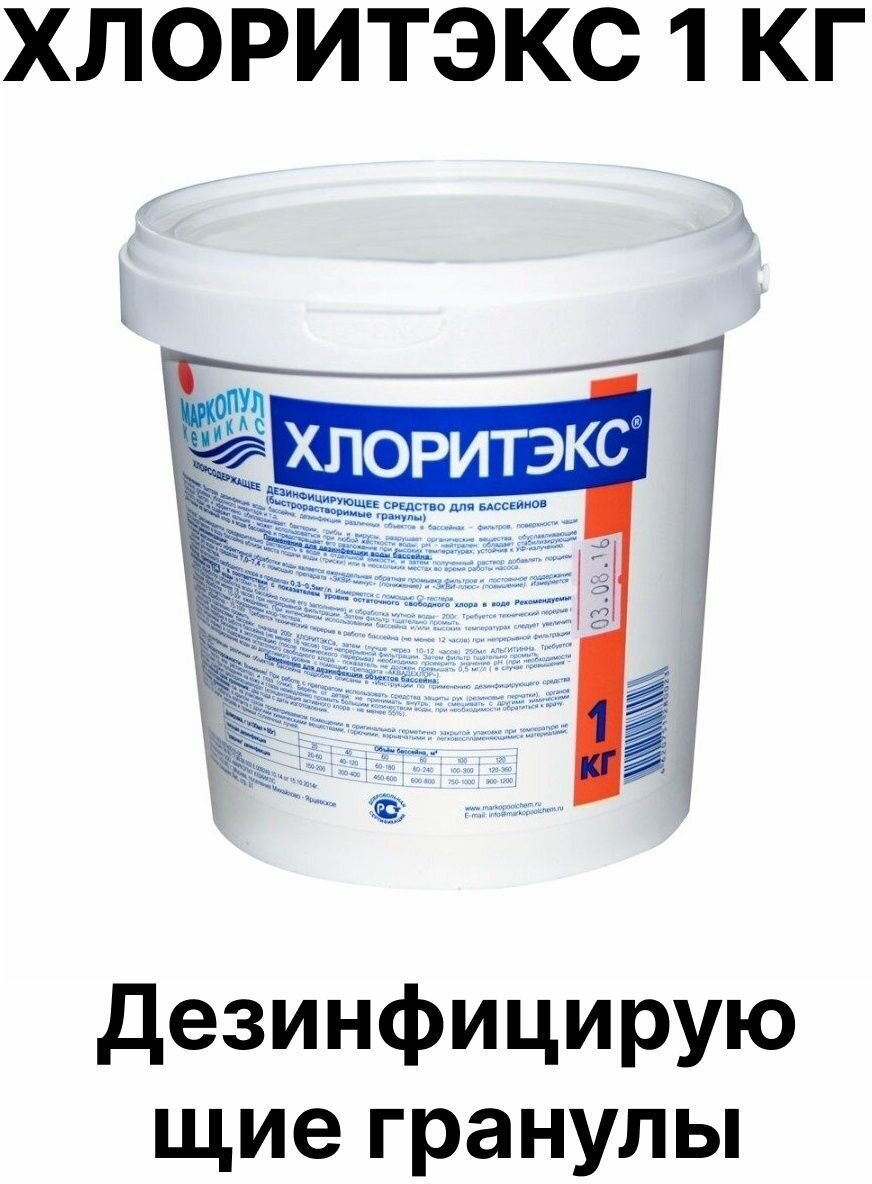Маркопул Кемиклс Дезинфицирующее средство "Хлоритэкс", для воды в бассейне, гранулы, 1 кг 1 597 ₽
