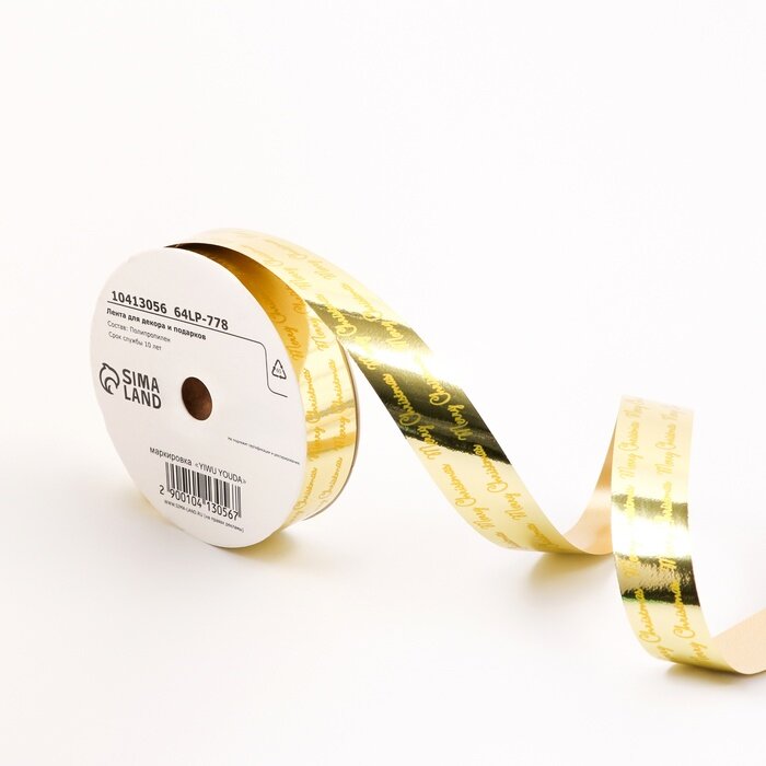 10 цен на UPAK LAND Новый год. Лента для декора и подарков новогодняя, "С рождеством", золотая, 2 см х 50 м.