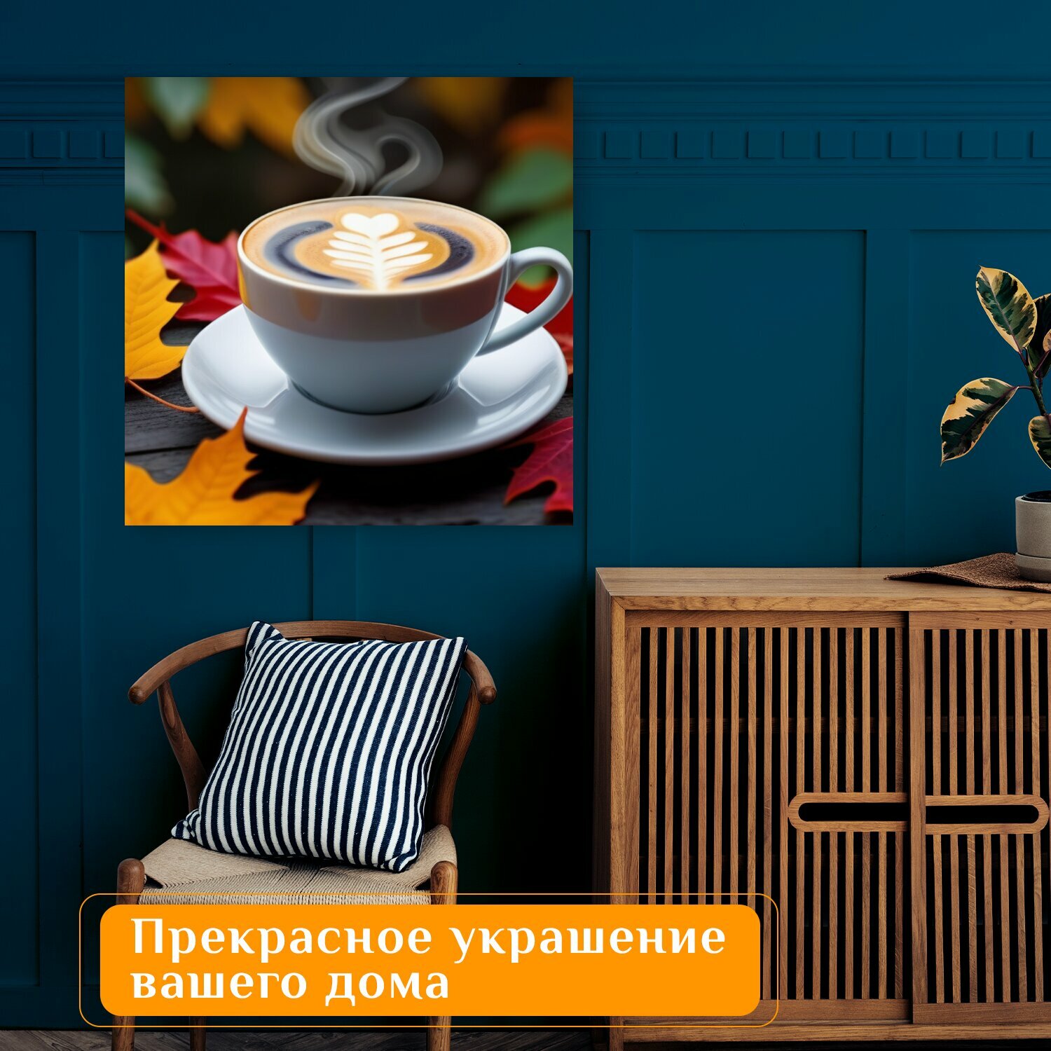 10 цен на Картина на холсте "Чашка кофе с уютом среди осенних листв , " на подрамнике 75х75 см. для интерьера