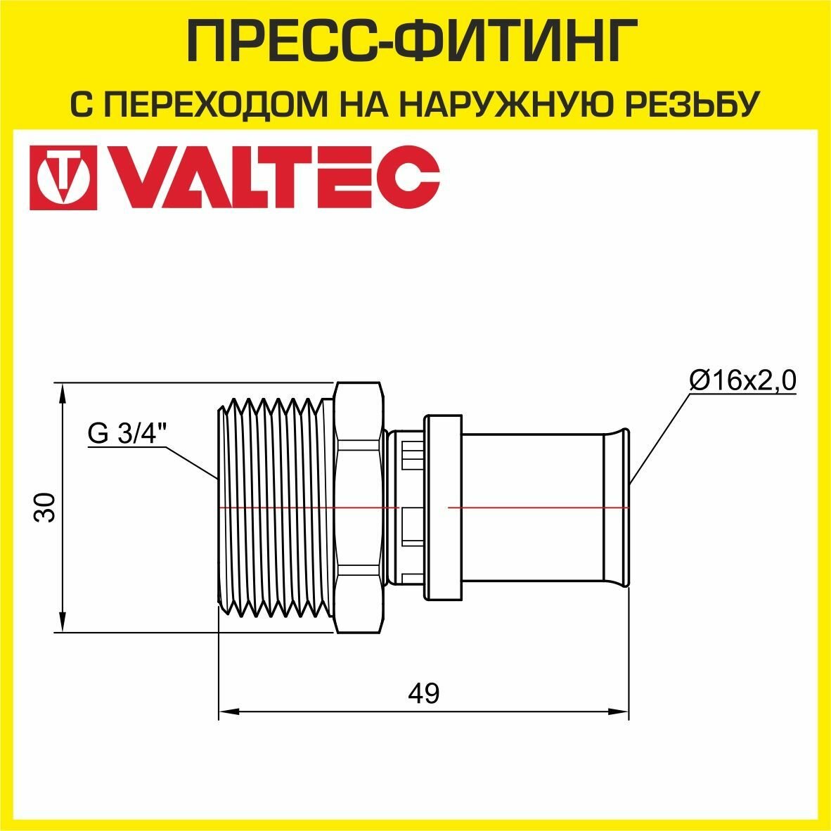Пресс-фитинг прямой с переходом на наружную резьбу 16х3/4 VTm.201.N информация: