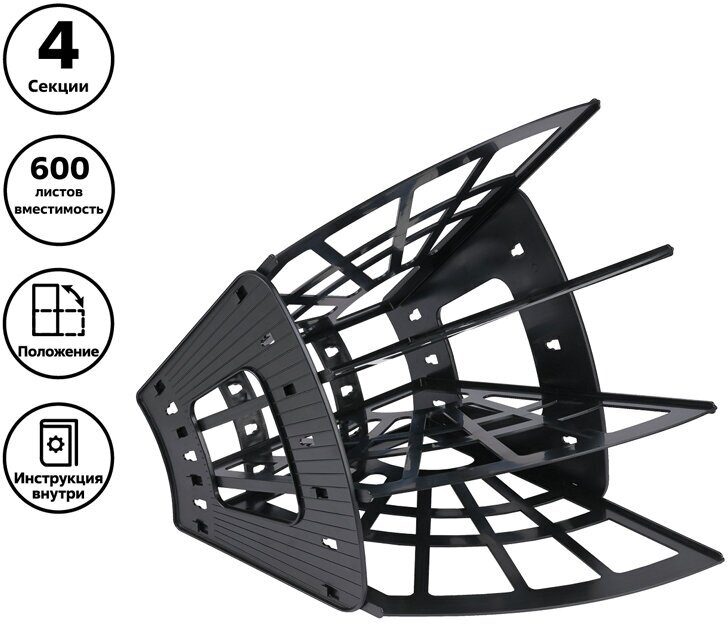 Комплект 10 шт, Лоток для бумаг веерный СТАММ "Эконом", 4-х секционный, черный информация: