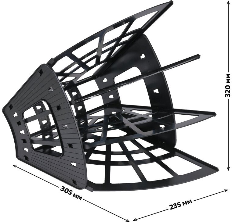 Лоток для бумаг веерный BRAUBERG "Basic" 7-ми секционный 6 отделений сетчатый черный, 1 шт