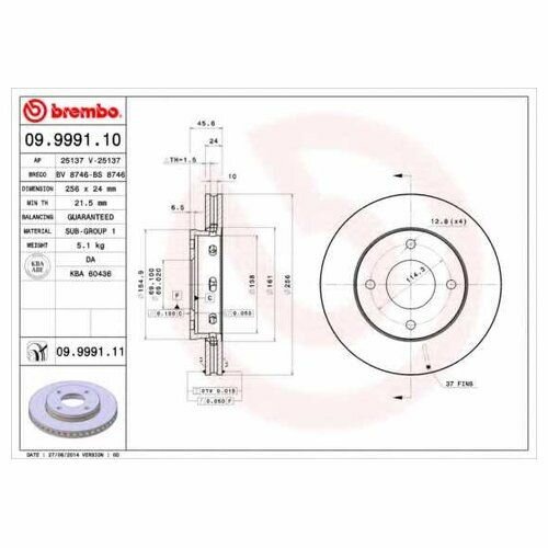 Тормозной диск передний Brembo 09999111 для Mitsubishi Colt VI информация: