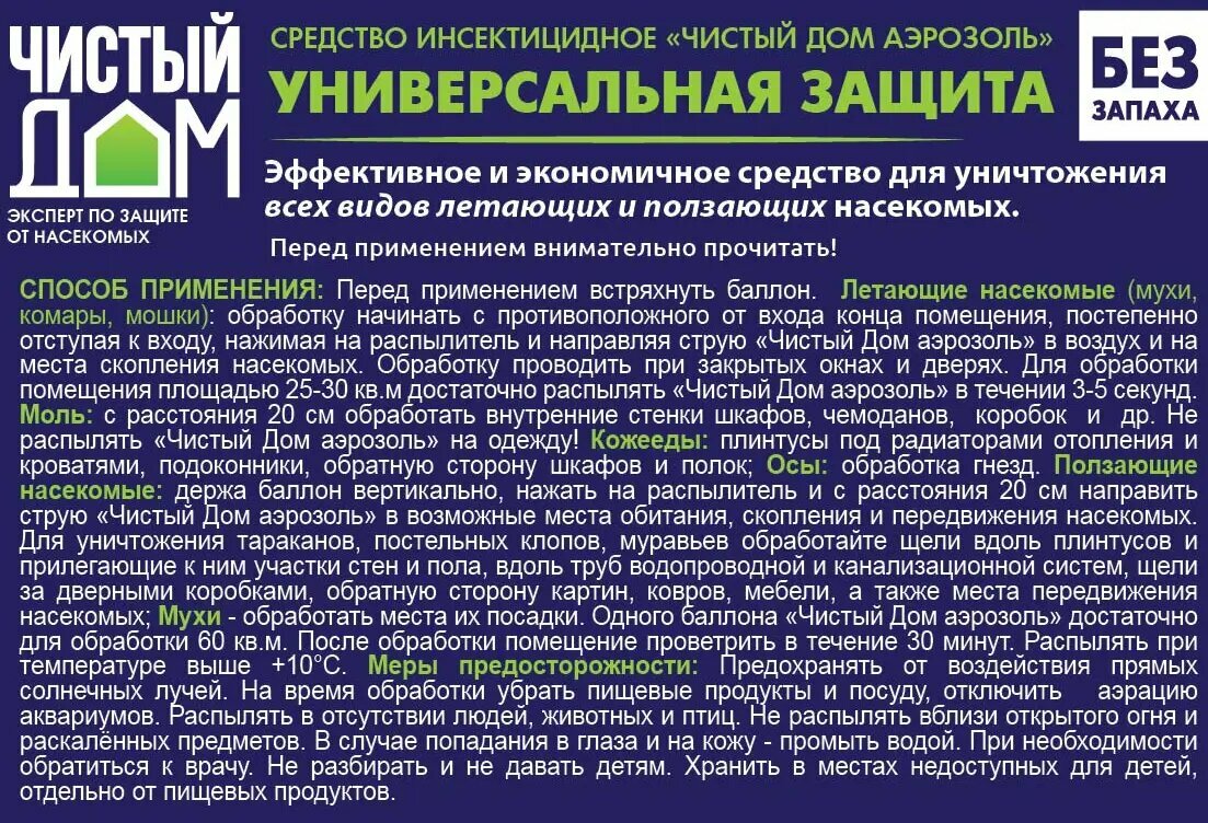 Аэрозоль от насекомых супер универсальный "Чистый Дом" (двойное распыление), 600 мл информация: