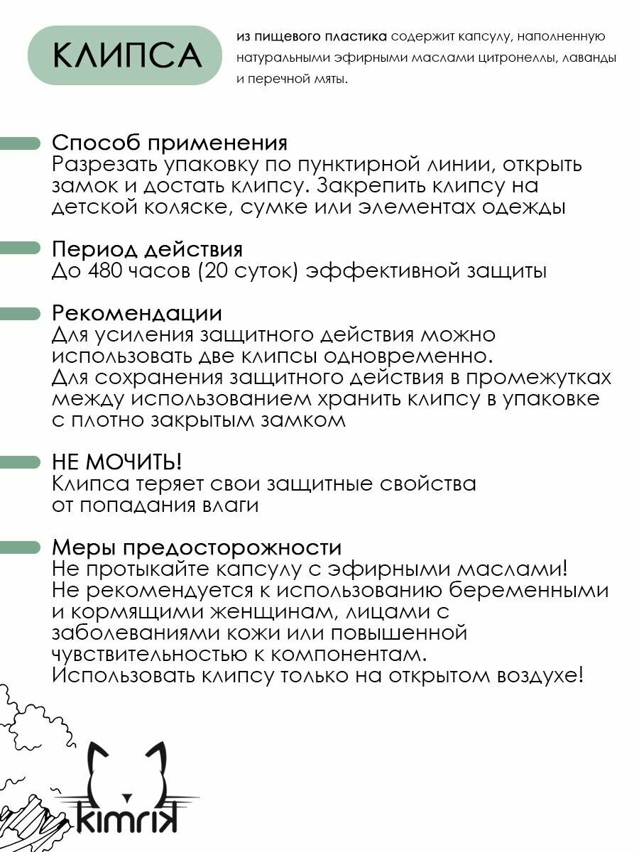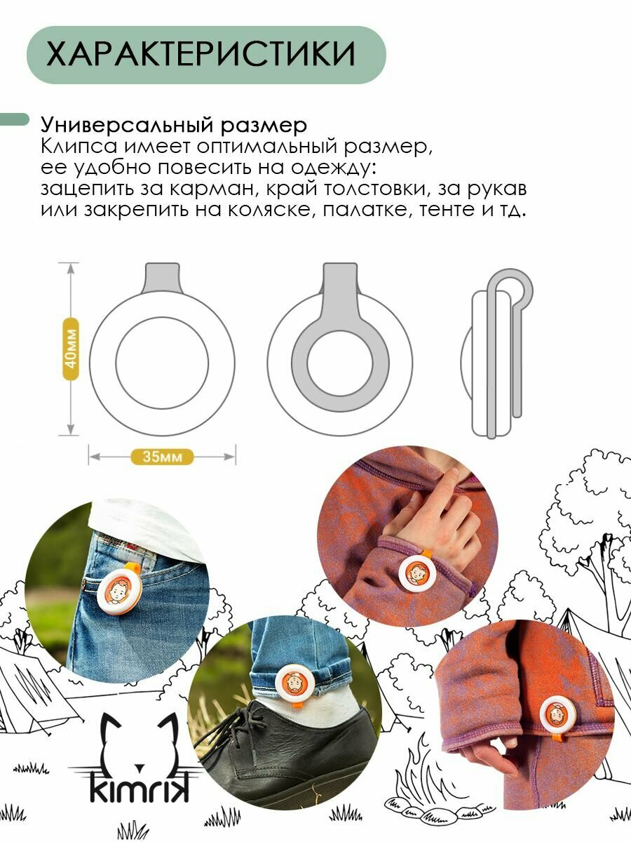 Защитная клипса от комаров и мошек универсальная ZU-ZU для детей и взрослых с эфирными маслами информация: