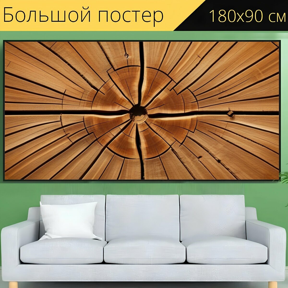 Большой постер "Уникальные узоры от спилов деревьев" 180 x 90 см. для интерьера на стену информация: