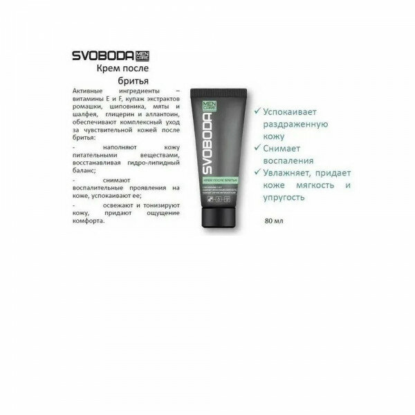 Свобода SVOBODA Men Care Крем после бритья с витаминами E и F г, 80 мл, 77 г информация: