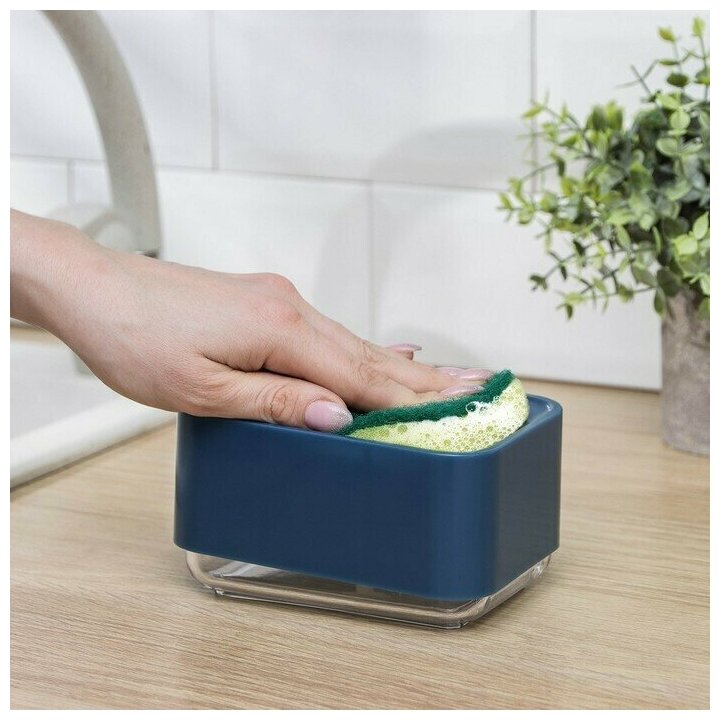 Дозатор для моющего средства с подставкой для губки, 250 мл, губка в комплекте, цвет синий информация: