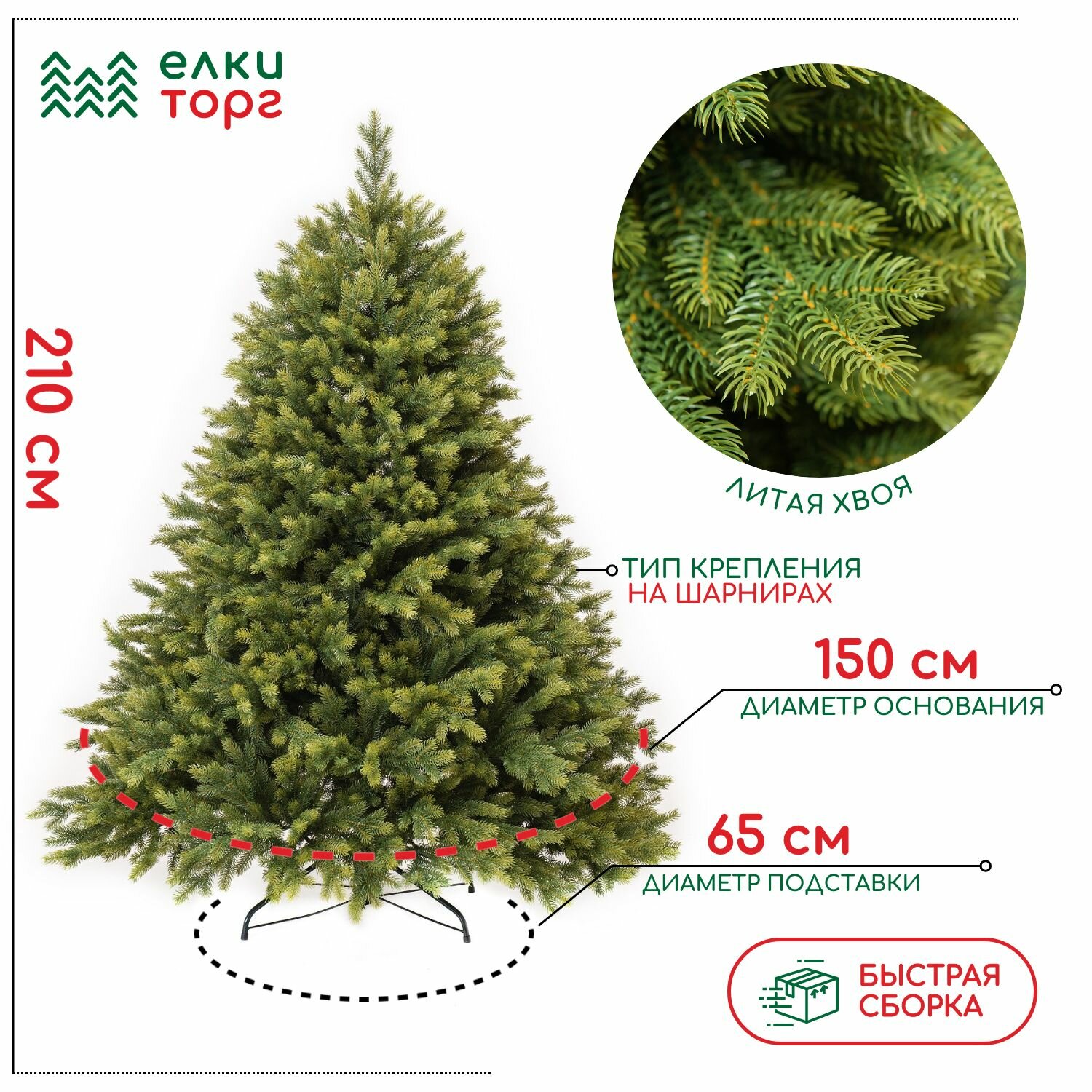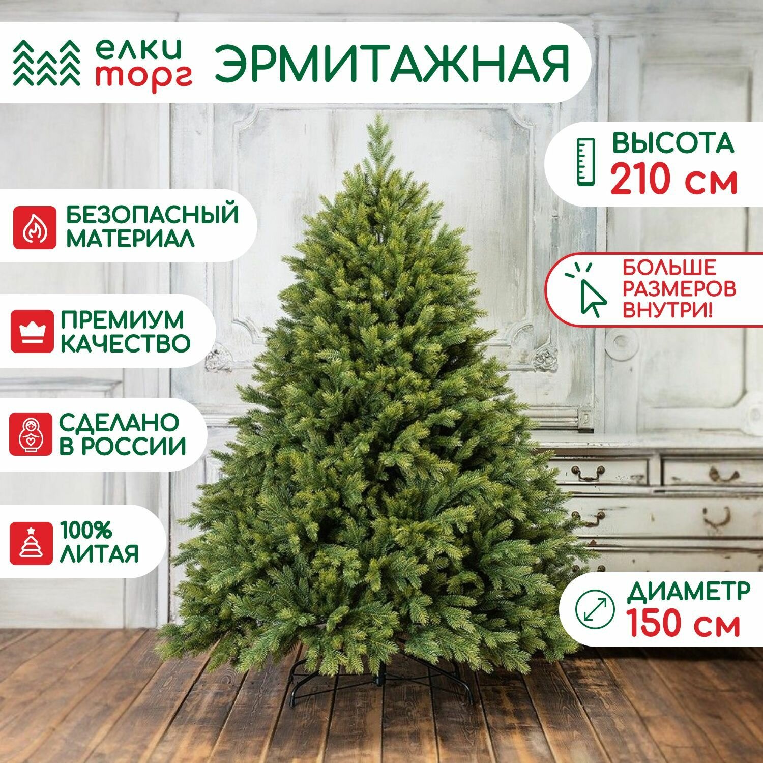 Новогодняя искусственная елка Эрмитажная 210 см., 100% литая хвоя, ЕлкиТорг (94210) информация: