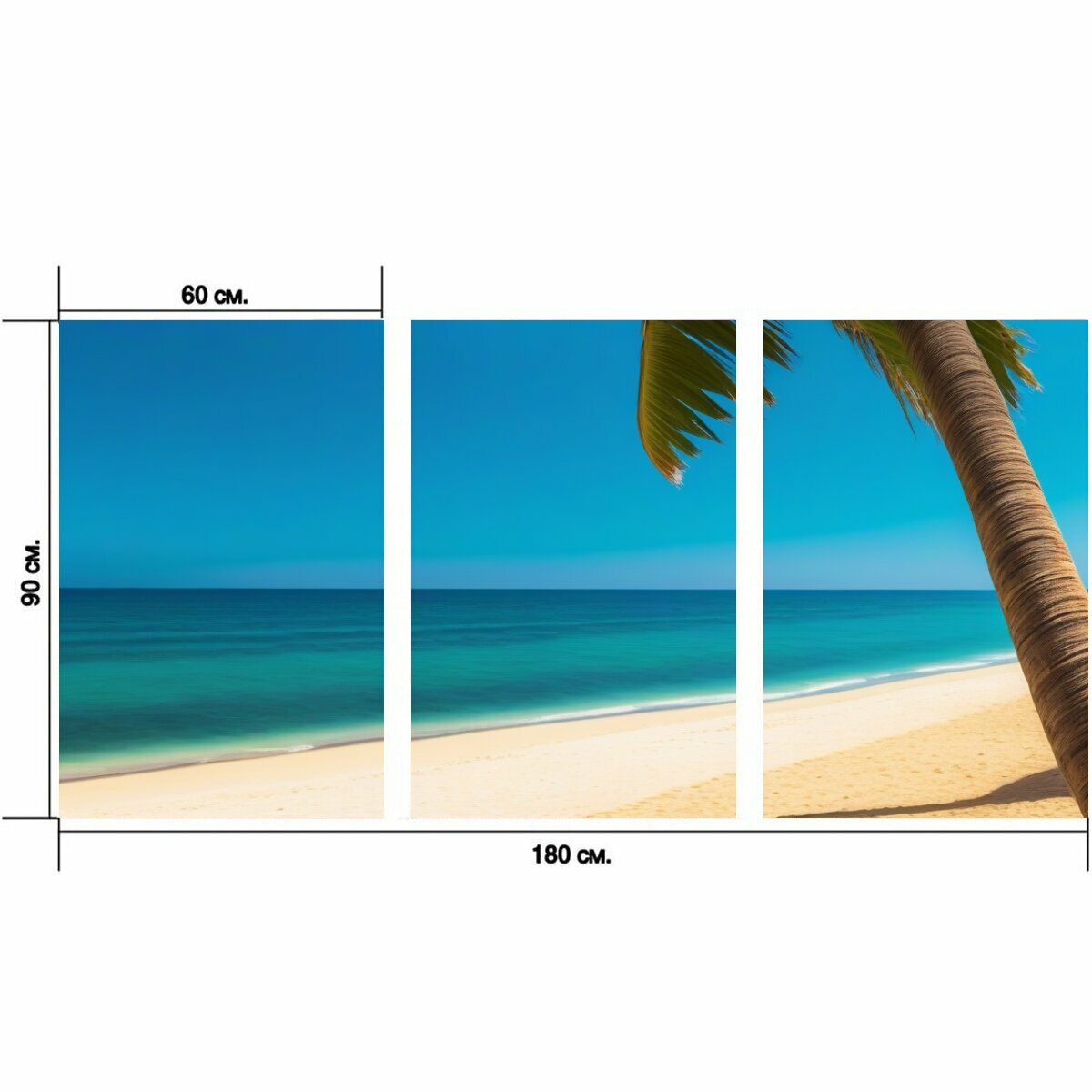 Отзывы на Модульный постер "Серфинг на пляже с наклонной пальмой" 180 x 90 см. для интерьера на стену