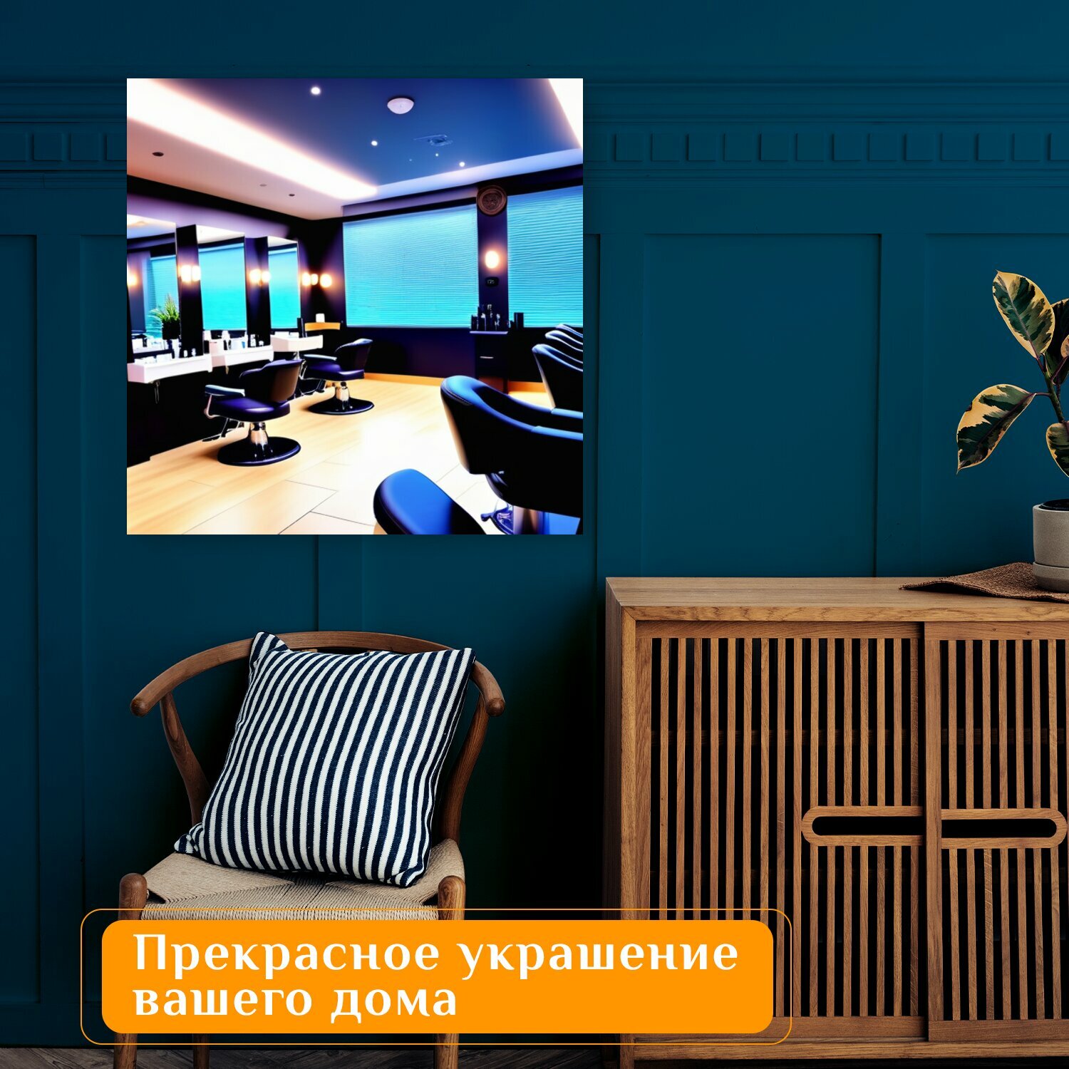 10 цен на Картина на холсте в парикмахерскую "Парикмахерская с уютной атмосферой , " на подрамнике 75х75 см. для интерьера