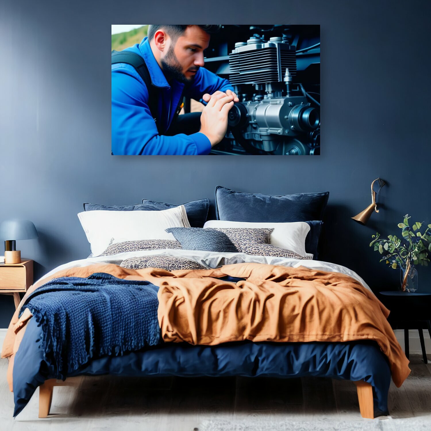 10 цен на Картина на холсте в автосервис "Механик слушает двигатель внедорожника , " на подрамнике 120х75 см. для интерьера