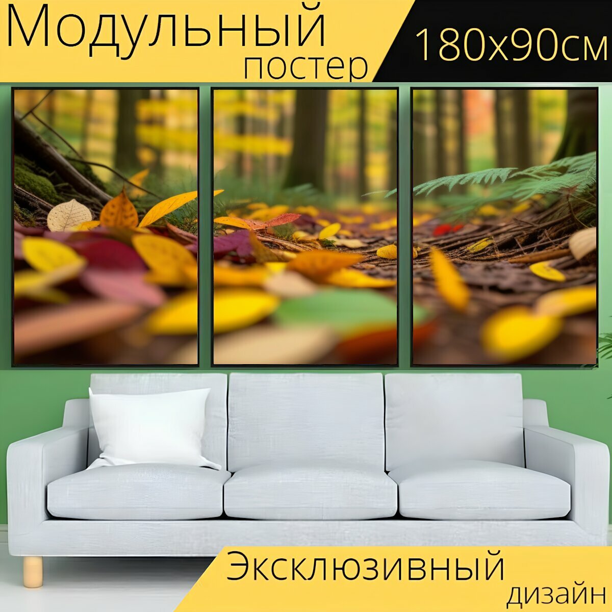 Модульный постер "Осенние цвета на лесной подстилке , " 180 x 90 см. для интерьера на стену информация: