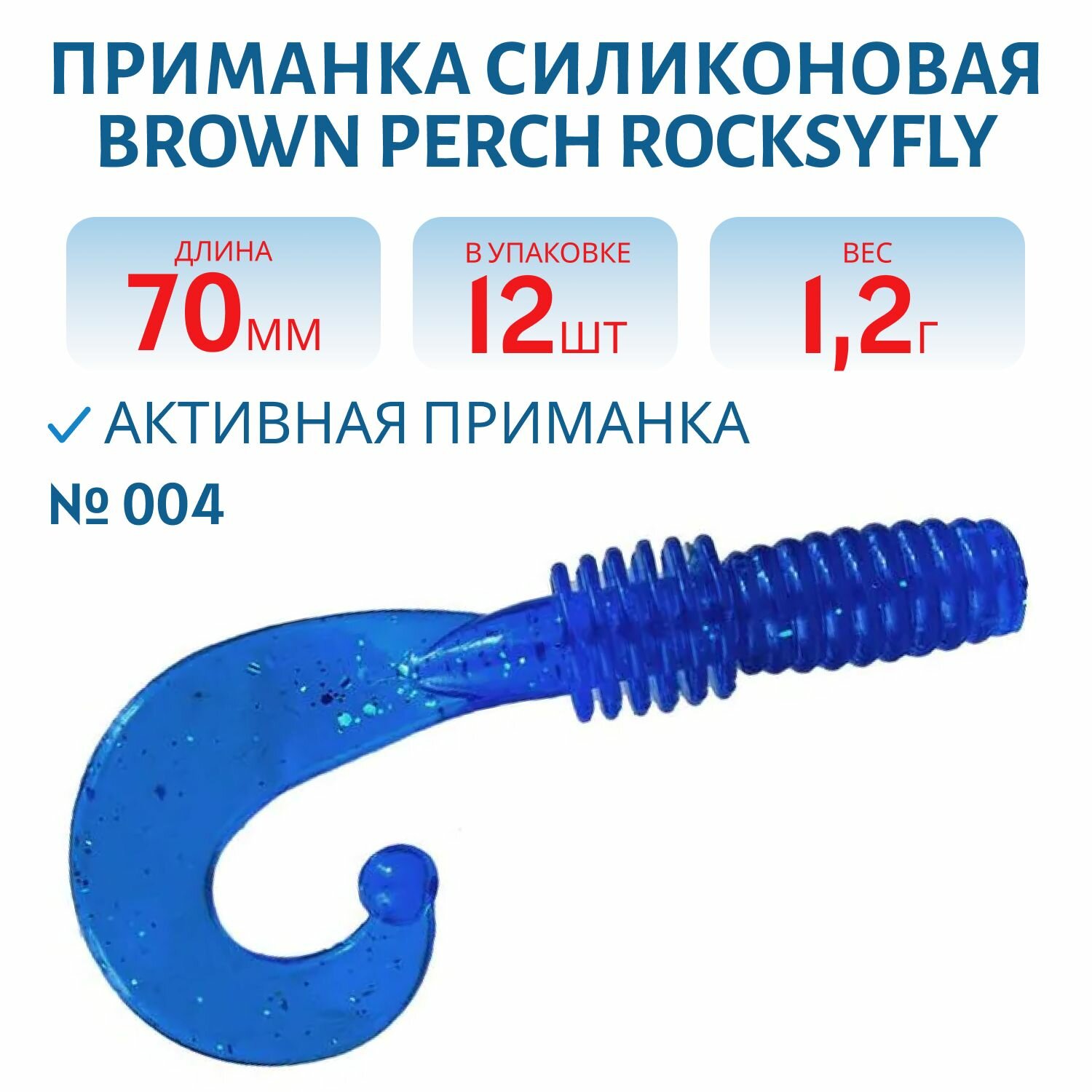 Приманка силиконовая Brown Perch твистер RocksyFly 70 мм цвет 004 синий сапфир UV (12 шт) информация: