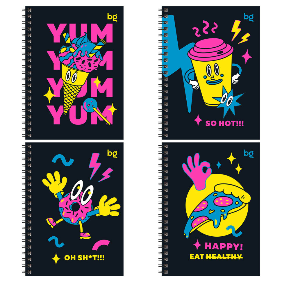 Записная книжка А6 80л., на гребне BG "Неоновый восторг", матовая ламинация, выб. лак, твердая обложка, 8 штук, 364441 информация: