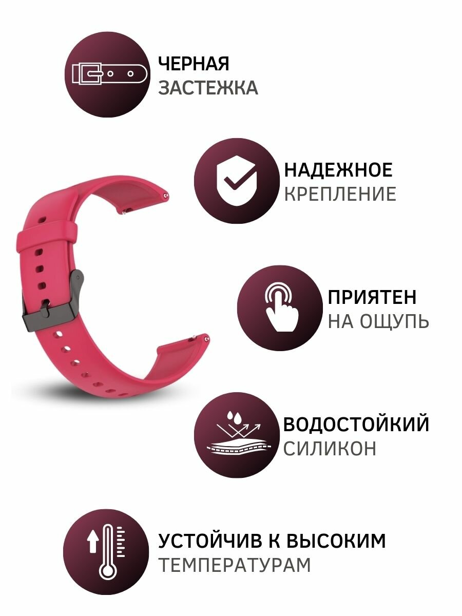 Отзывы на Ремешок для часов Fossil шириной 22мм, Dream силиконовый,(черная застежка) шириной 22 мм, бордовый