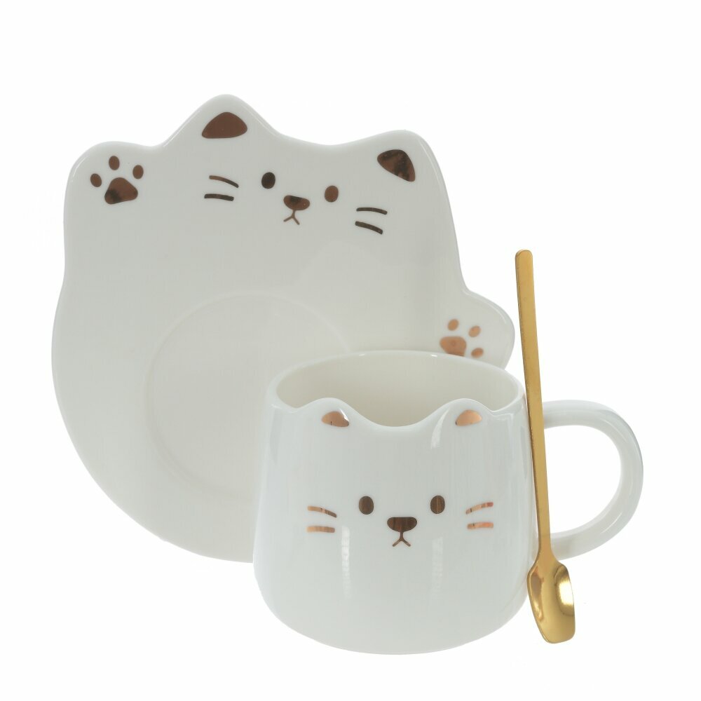 10 цен на Кружка с блюдцем и ложкой, 300 мл, 16х15х10 см, 1шт из 3х вариантов KSM-814373