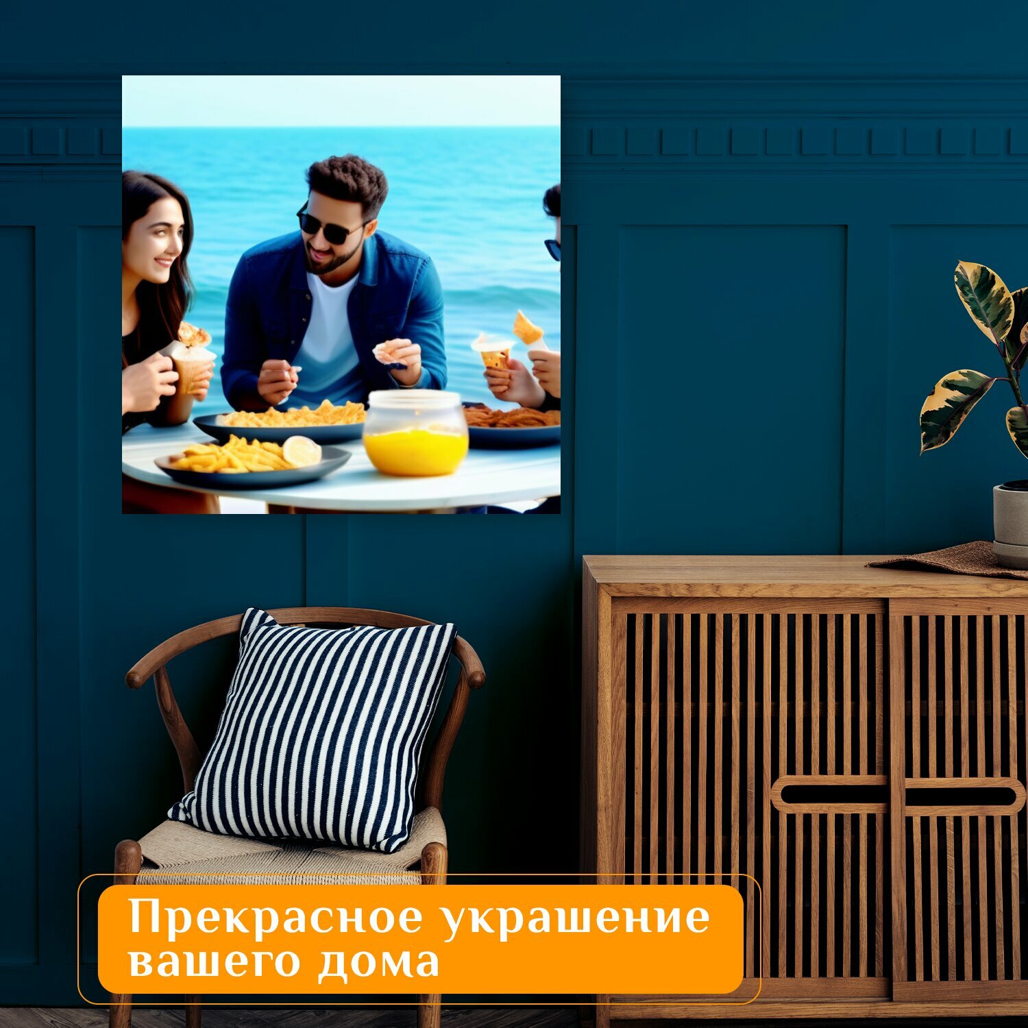 Отзывы на Картина на холсте "Группа друзей, наслаждающихся закусками у моря" на подрамнике 75х75 см. для интерьера