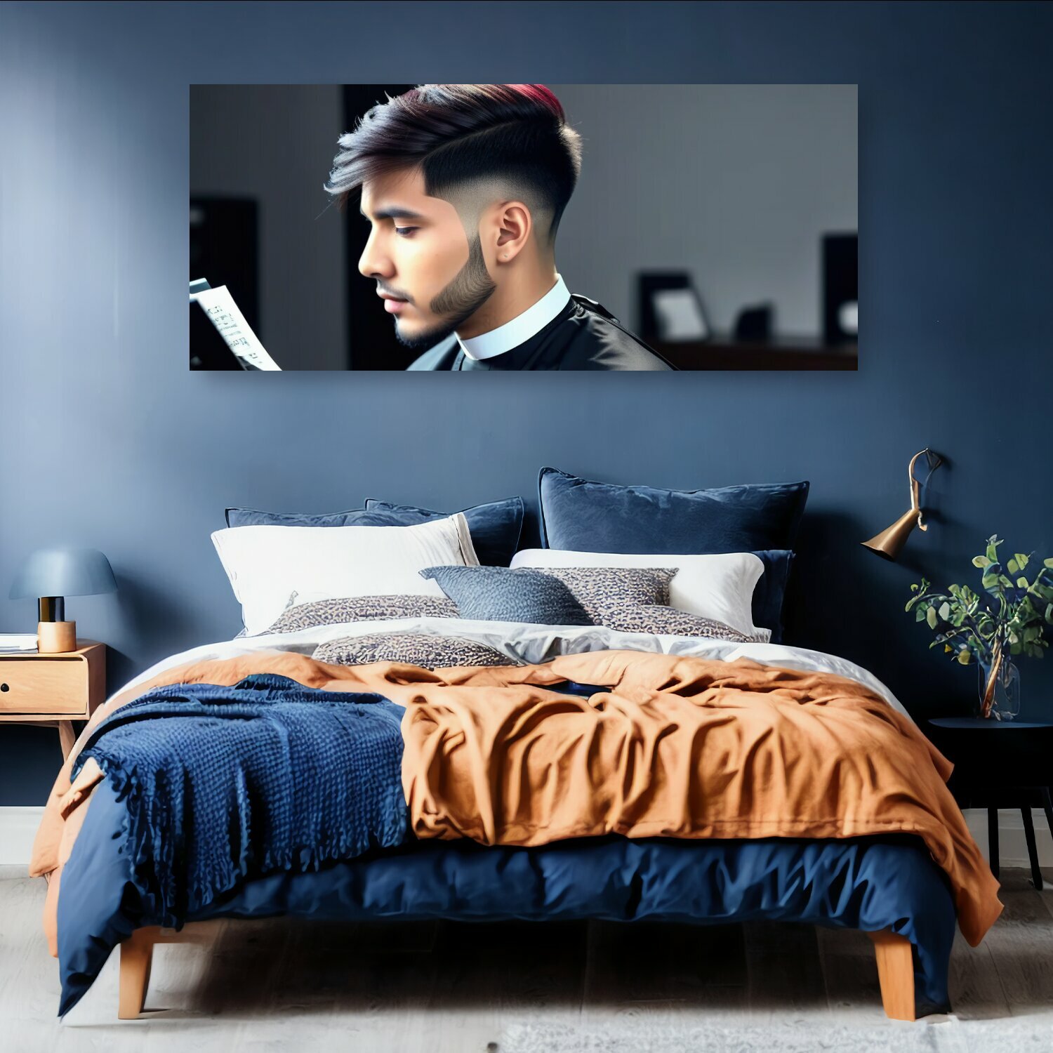 Отзывы на Картина на холсте в парикмахерскую "Стрижка в стиле классической музыки , " на подрамнике 175х75 см. для интерьера