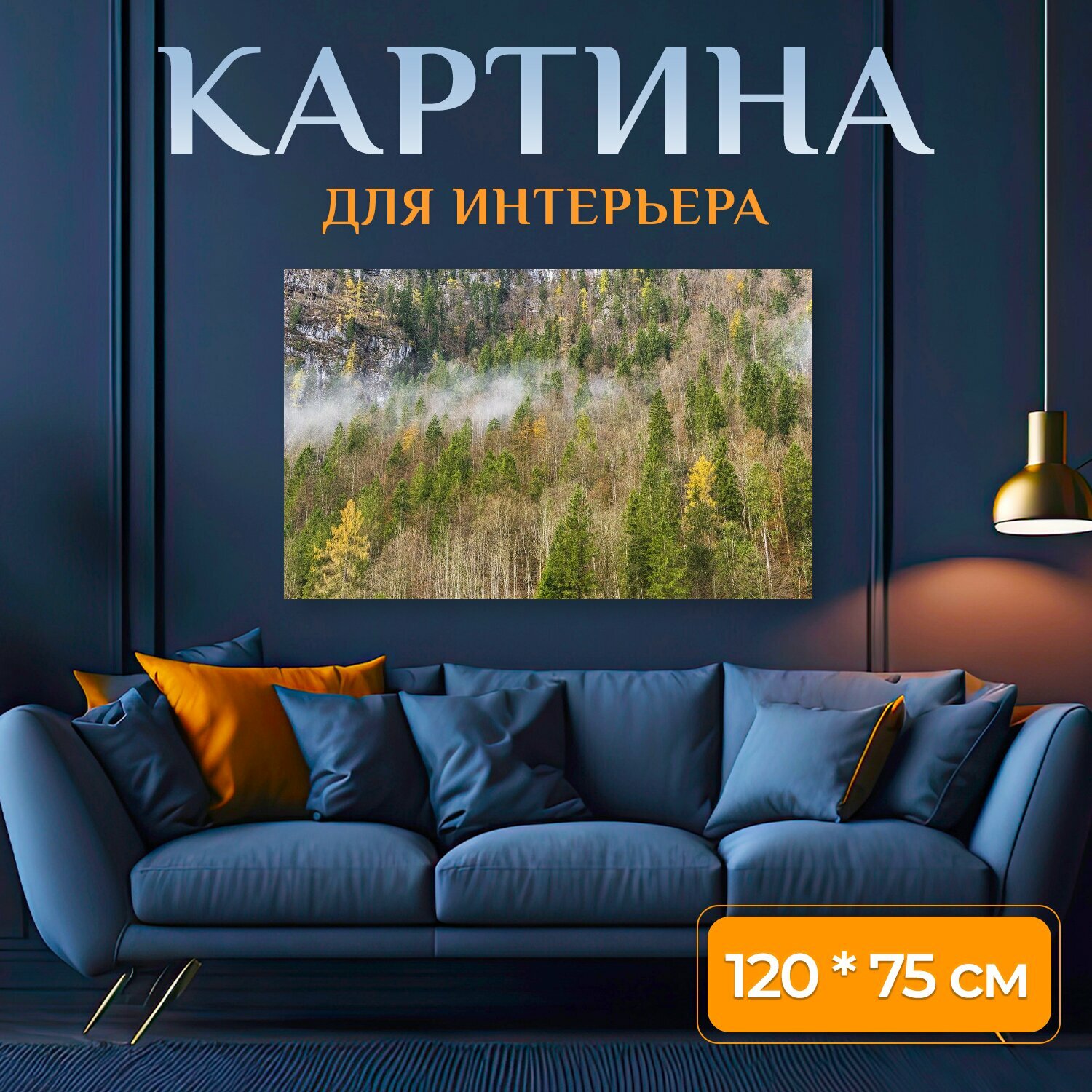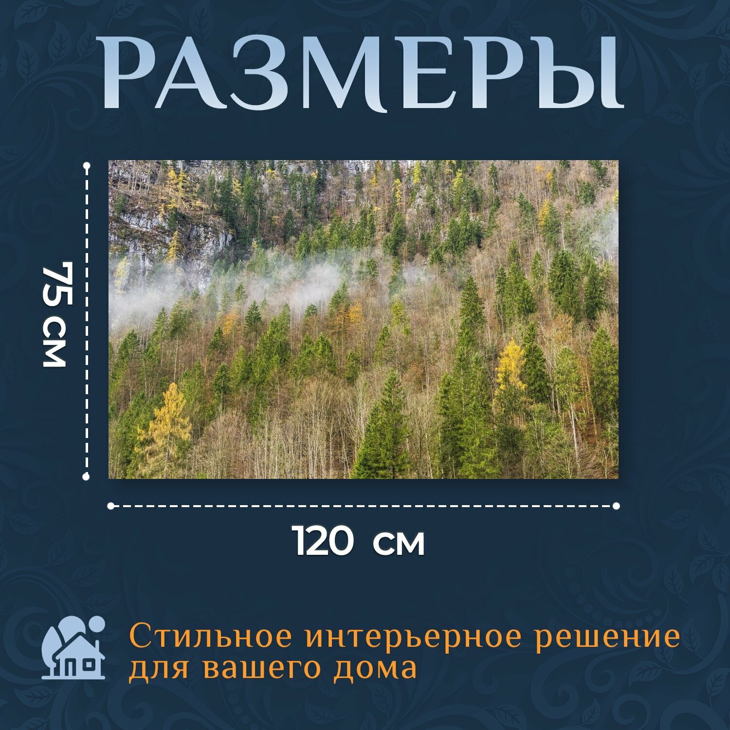 Картина на холсте "Лес, туман, природа" на подрамнике 120х75 см. для интерьера информация: