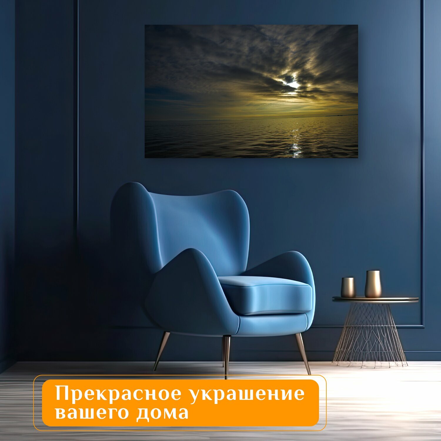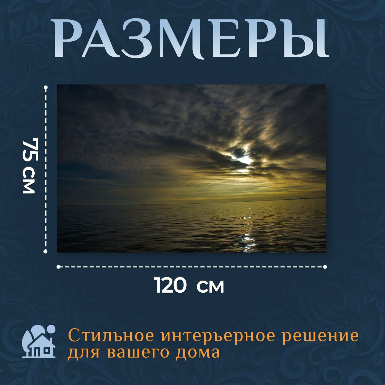 Картина на холсте "Заход солнца, море, горизонт" на подрамнике 120х75 см. для интерьера информация: