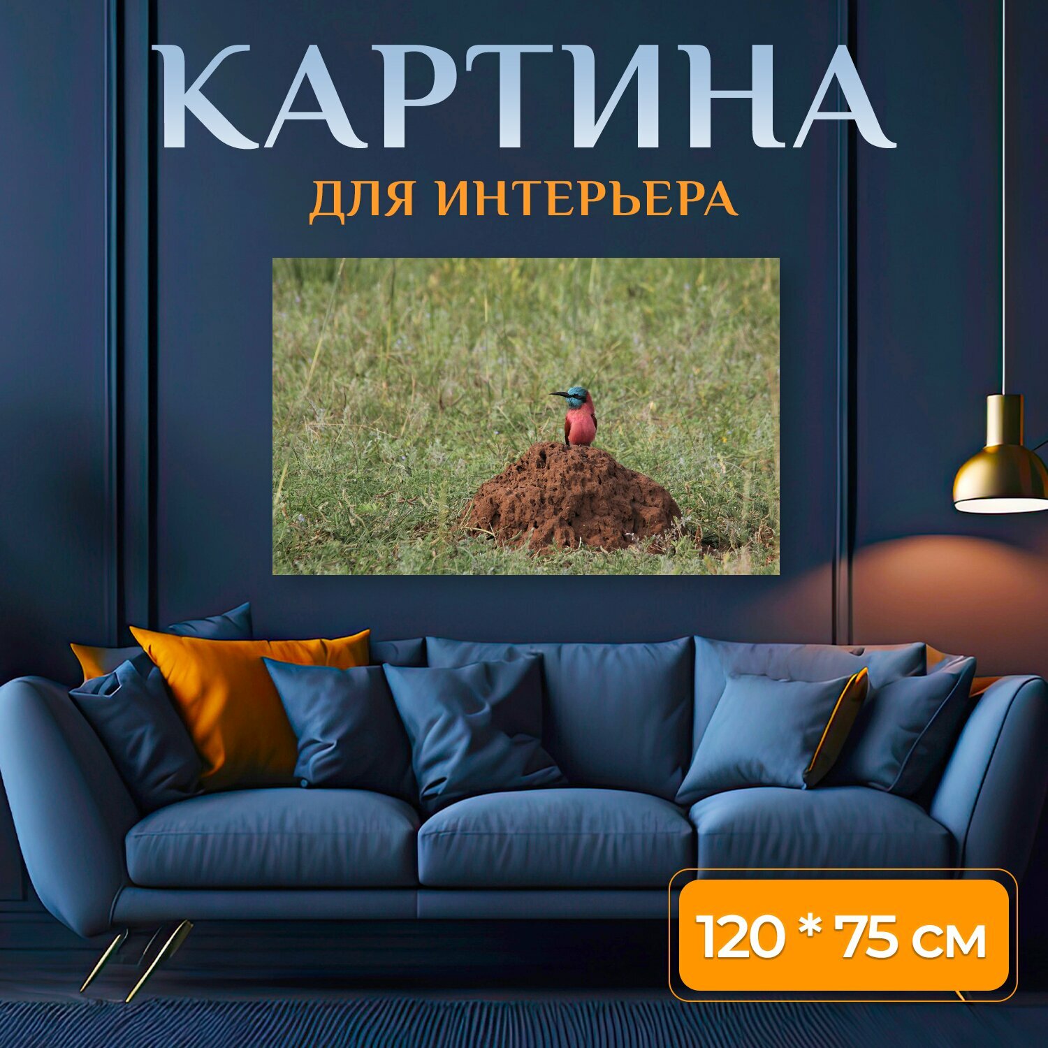 10 цен на Картина на холсте "Северный, кармин, золотистая щурка" на подрамнике 120х75 см. для интерьера