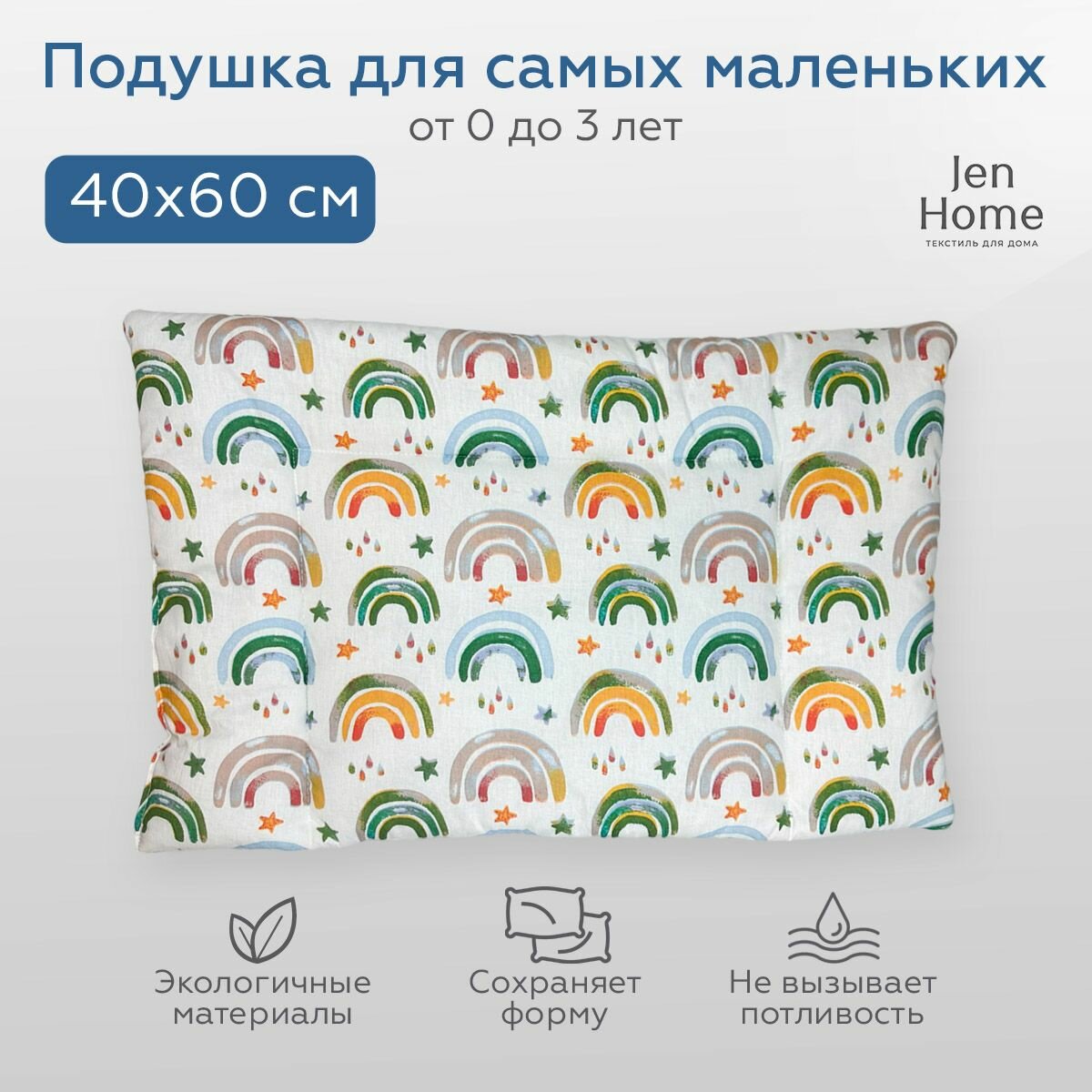 Подушка для малышей, гипоаллергенная 40х60 "Радуга" плоская 0+ информация: