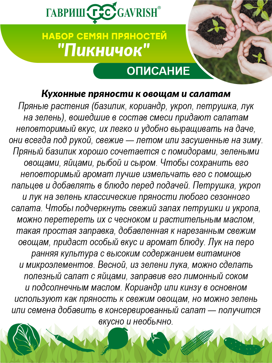 Набор семян пряностей Пикничок информация: