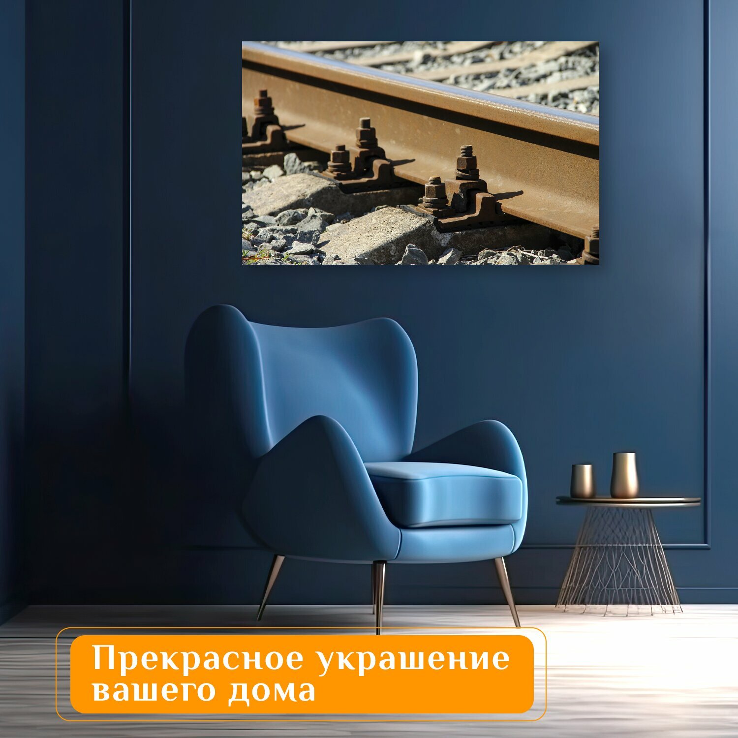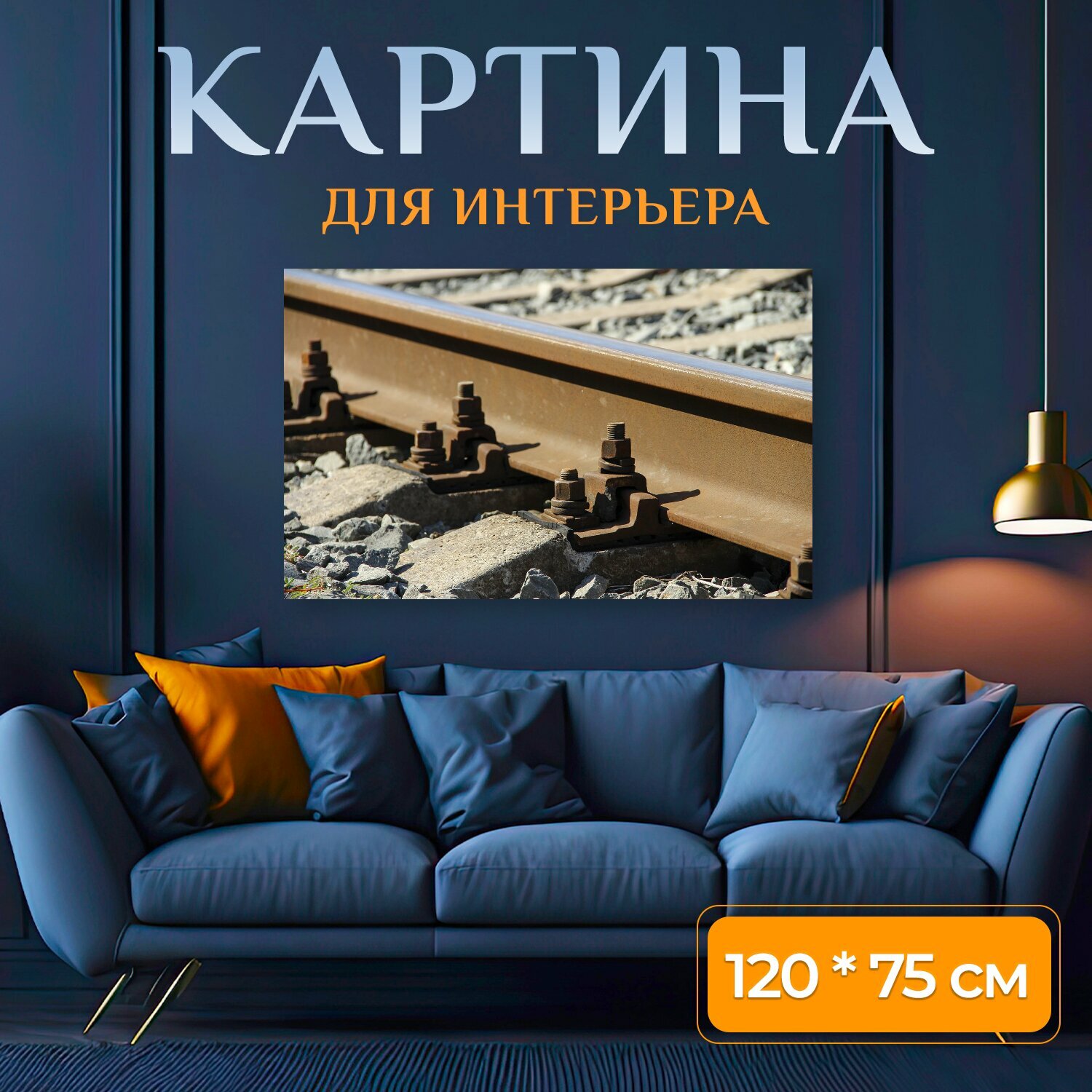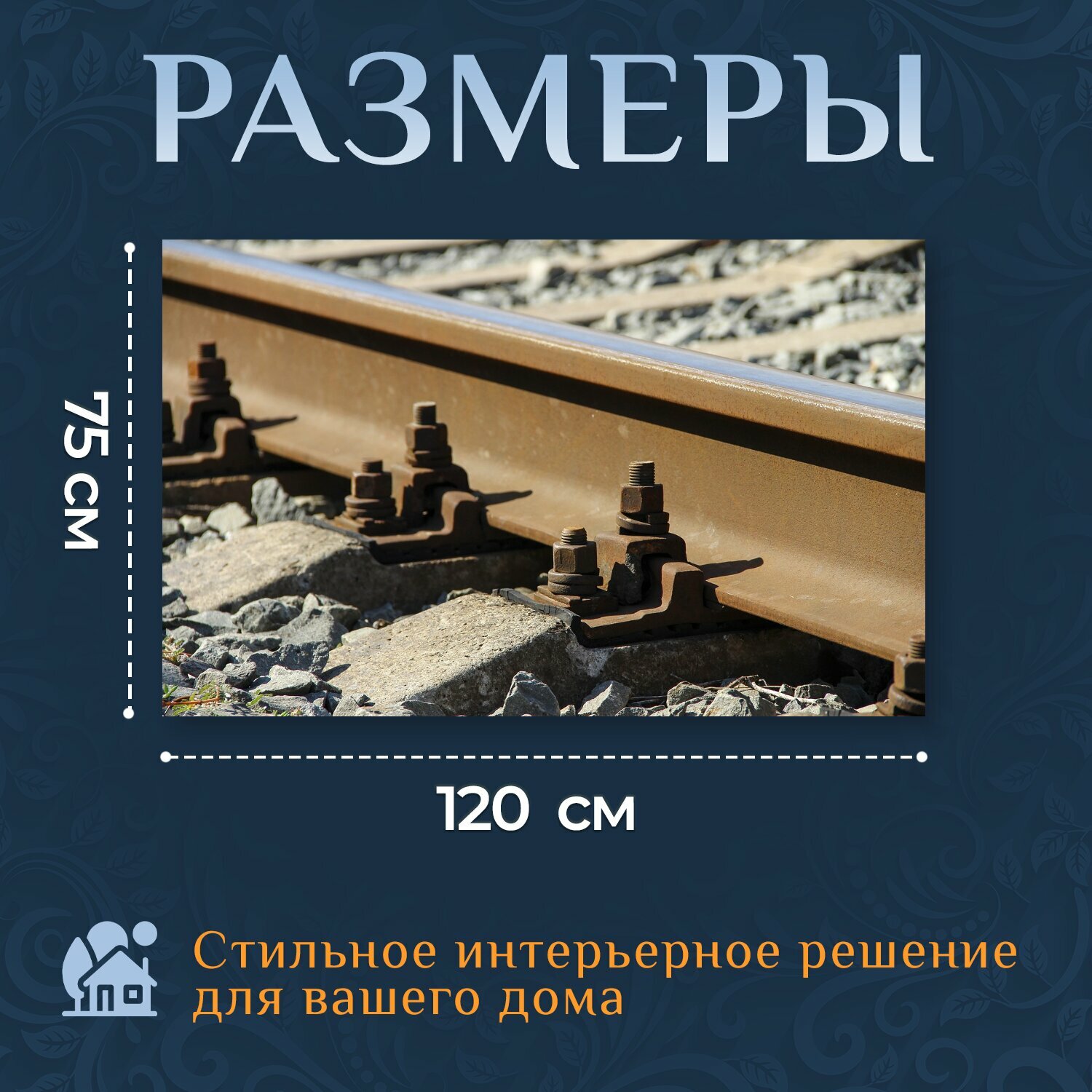 Картина на холсте "Рельсы, шпалы, железнодорожных" на подрамнике 120х75 см. для интерьера информация: