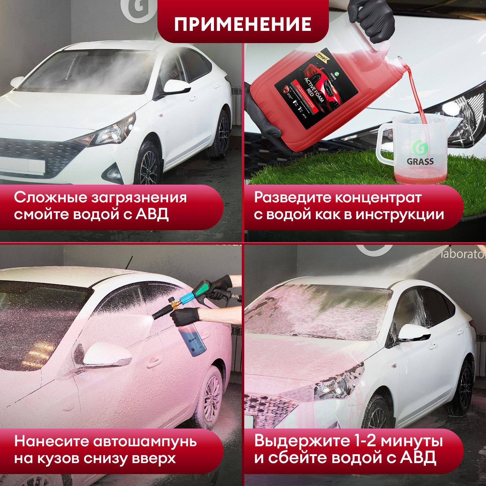 Отзывы на GRASS/ Автошампунь для бесконтактной мойки Active Foam Red, цветная пена, 5,8 кг.