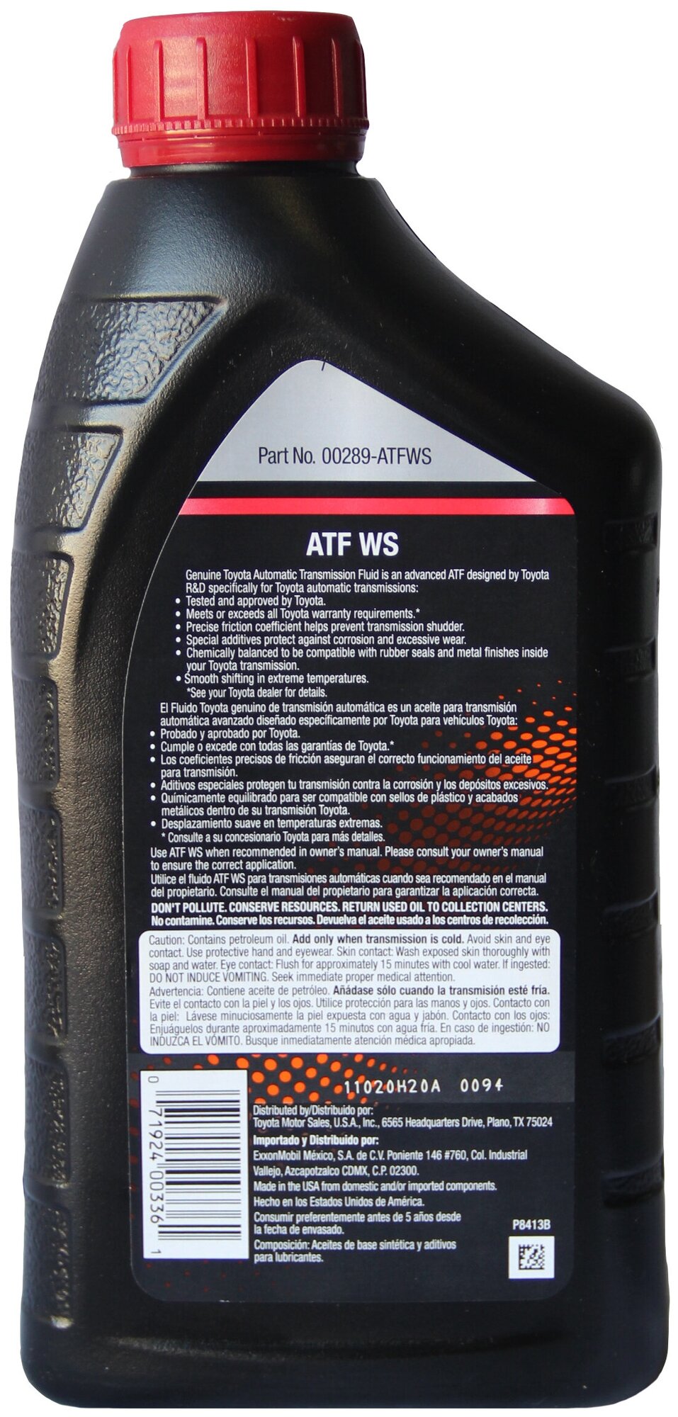 Мы выбрали 10 лучших цен на Масло трансмиссионное TOYOTA Auto Fluid WS (0,946л) Арт.00289-ATFWS. Перед тем как купить Масло трансмиссионное TOYOTA Auto Fluid WS (0,946л) Арт.00289-ATFWS посмотрите найденные предложения из Яндекс Маркета и других сайтов на основе XML фидов.