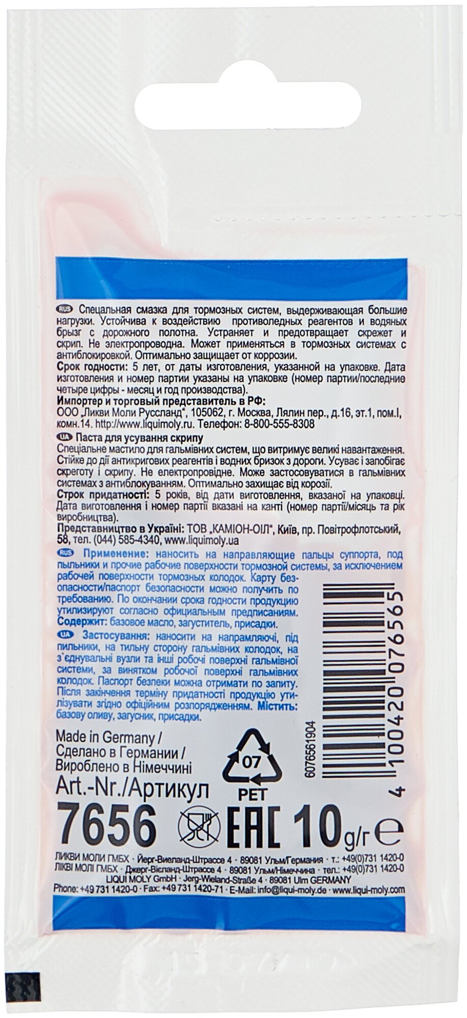 Антискрипнаяпастадлянаправляющих,0,01Л LIQUI MOLY арт. 7656 информация: