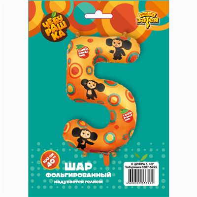 Шар фольгированный ненадутый К цифра 5 40" Чебурашка информация: