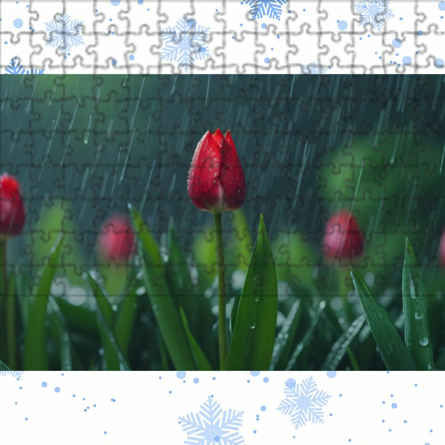 10 цен на Магнитный пазл "Тюльпаны и дождь, создающие атмосферу" на холодильник 27 x 18 см.