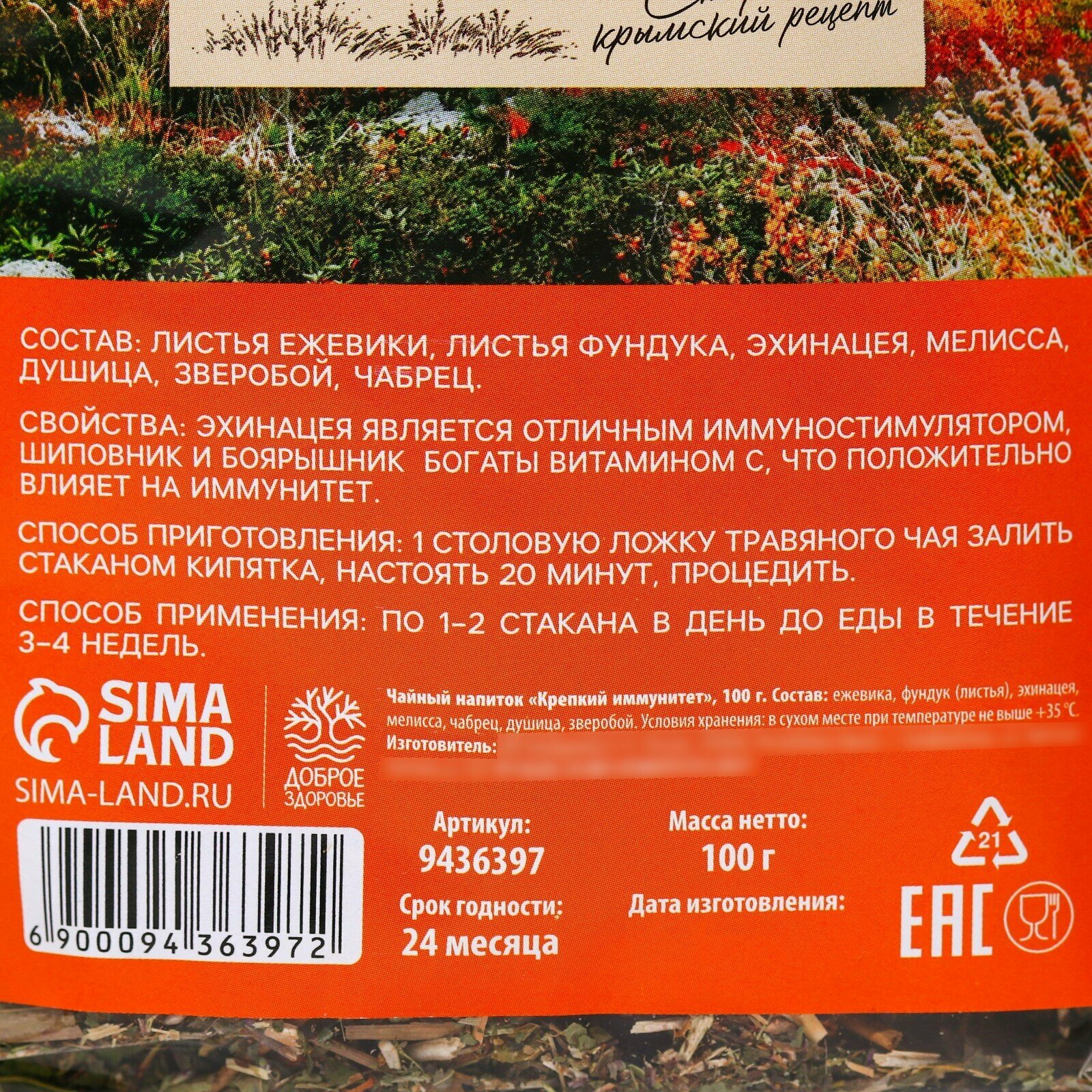 10 цен на Чай травяной «Крепкий иммунитет», 100 г. 1шт.
