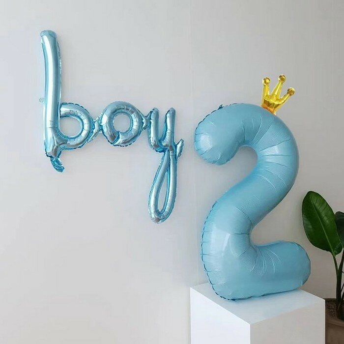 Шар фольгированный 40" «Цифра 2 с короной», цвет голубой информация: