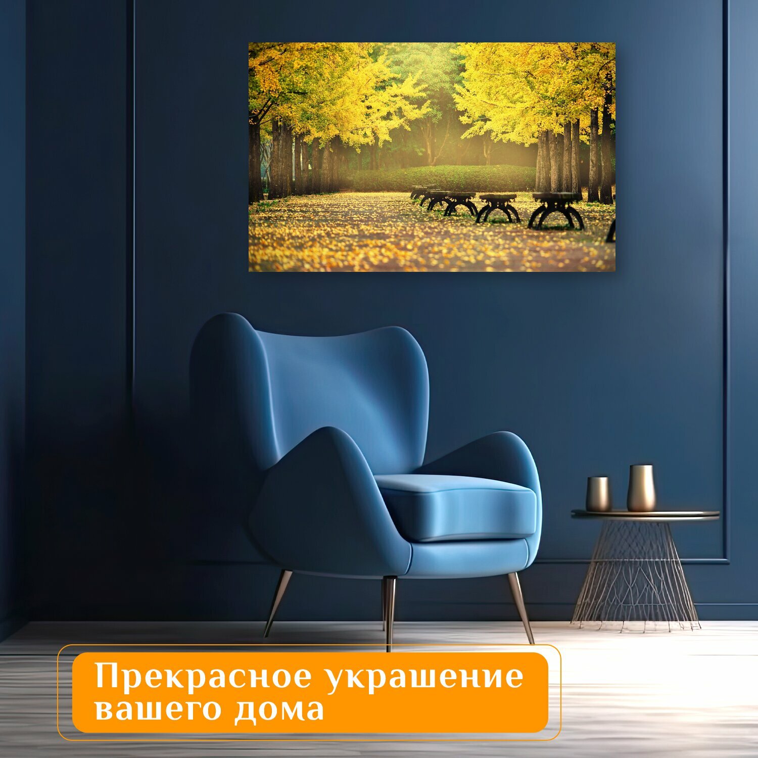 Картина на холсте "Осенние листья, осень, гинкго" на подрамнике 120х75 см. для интерьера информация: